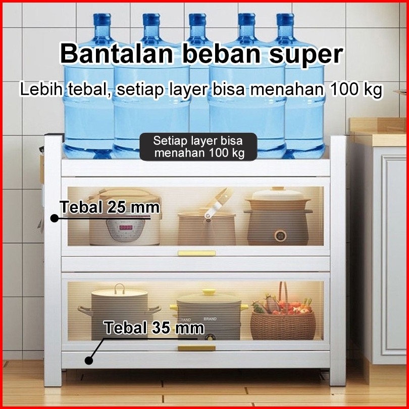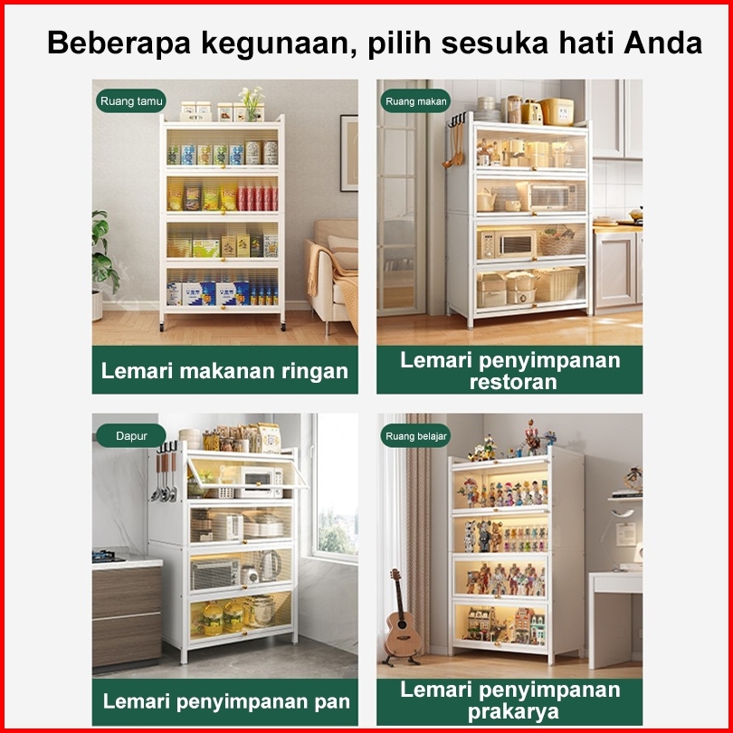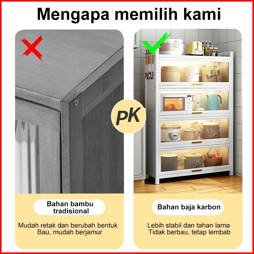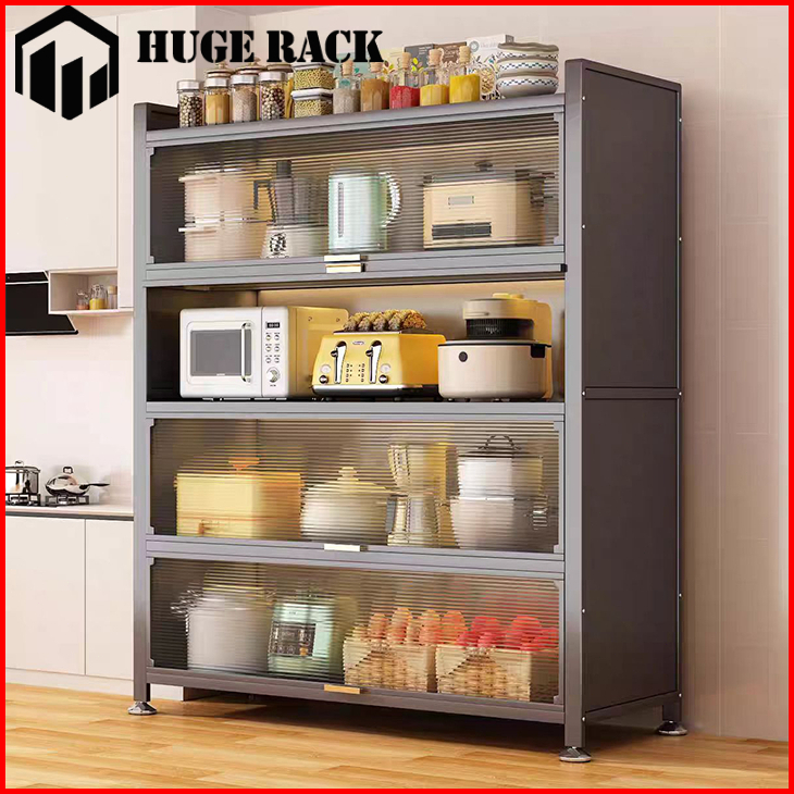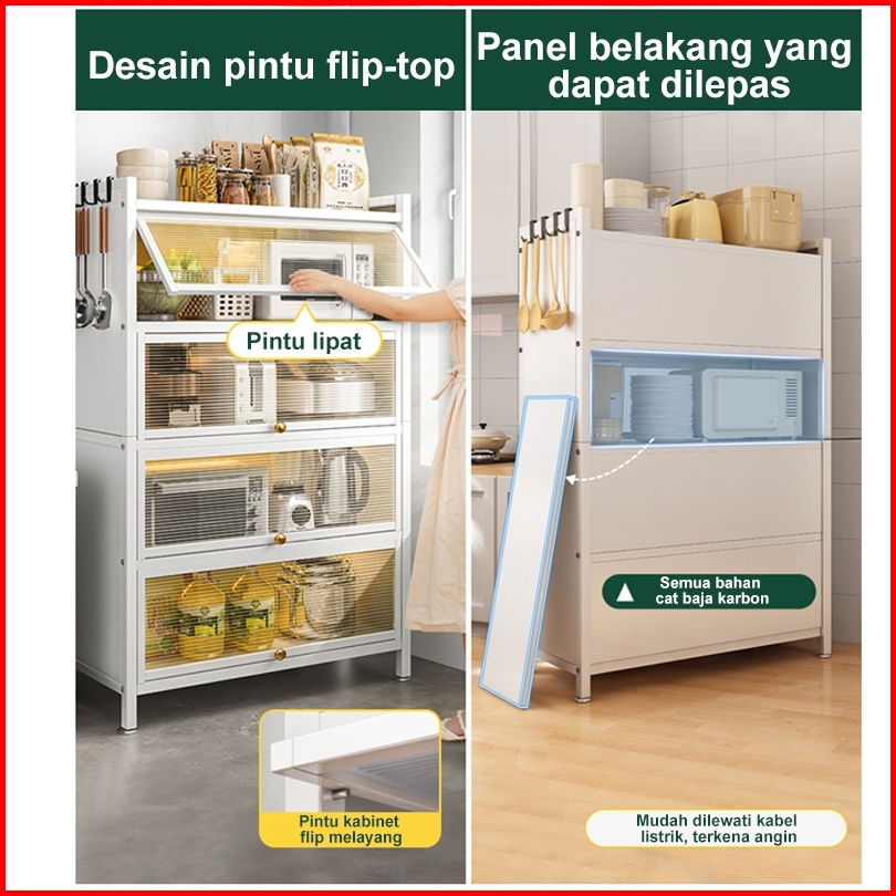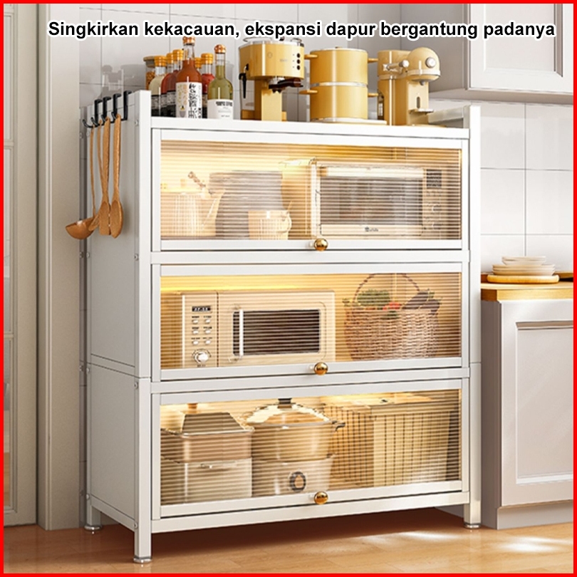 Rak Lemari Penyimpanan Dapur Dengan Pintu Abu 3 4 5 Susun Rak Dapur Multi-layer Rak Oven Microwave