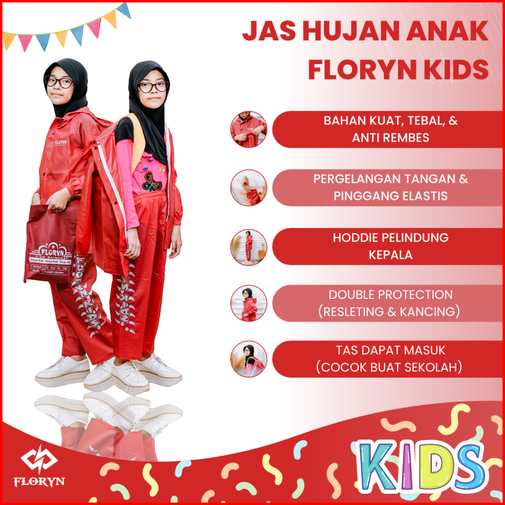 Jas Hujan Floryn Anak Pria Wanita Raincoat Mantel Anak Anak Karakter