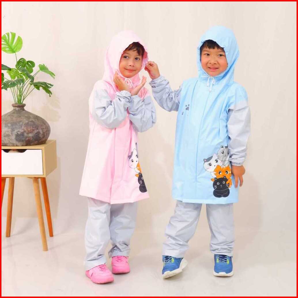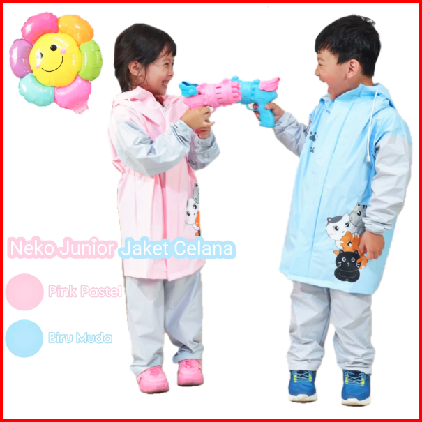 Jas Hujan Anak Neko Junior Laki Laki Dan Perempuan Jas Hujan Setelan Premium Mantel Celana Plevia