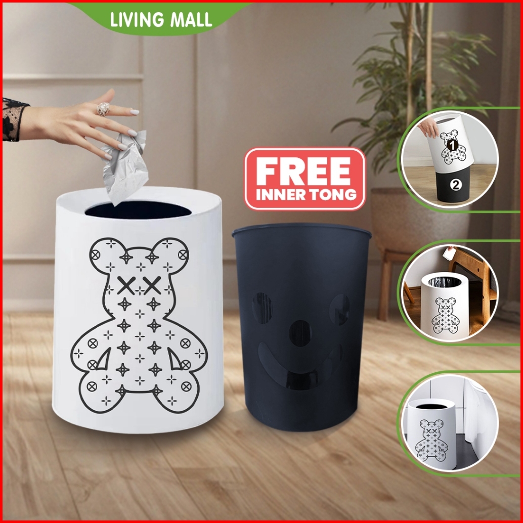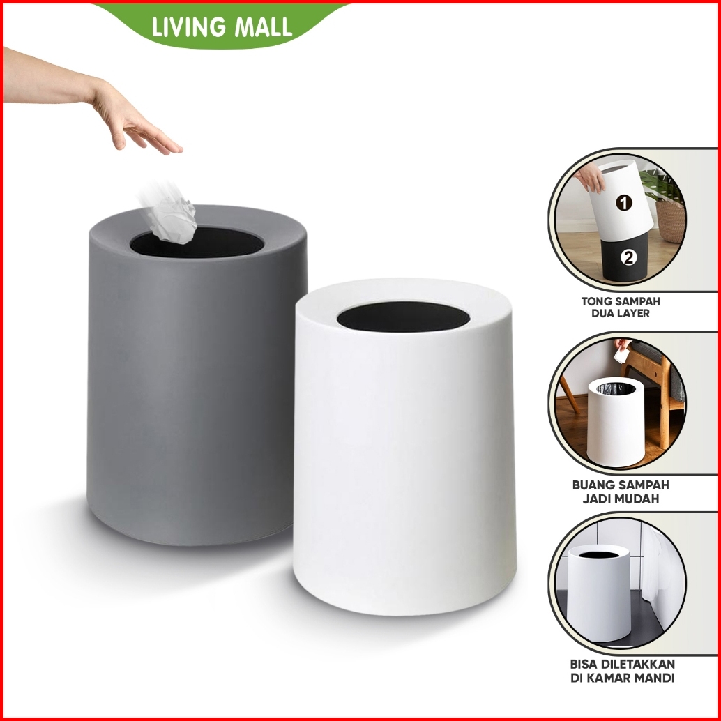 Living Mall Tempat Sampah Bulat Trash Bin Tong Sampah Plastik Minimalis Ruang Tamu Dapur Toilet E100