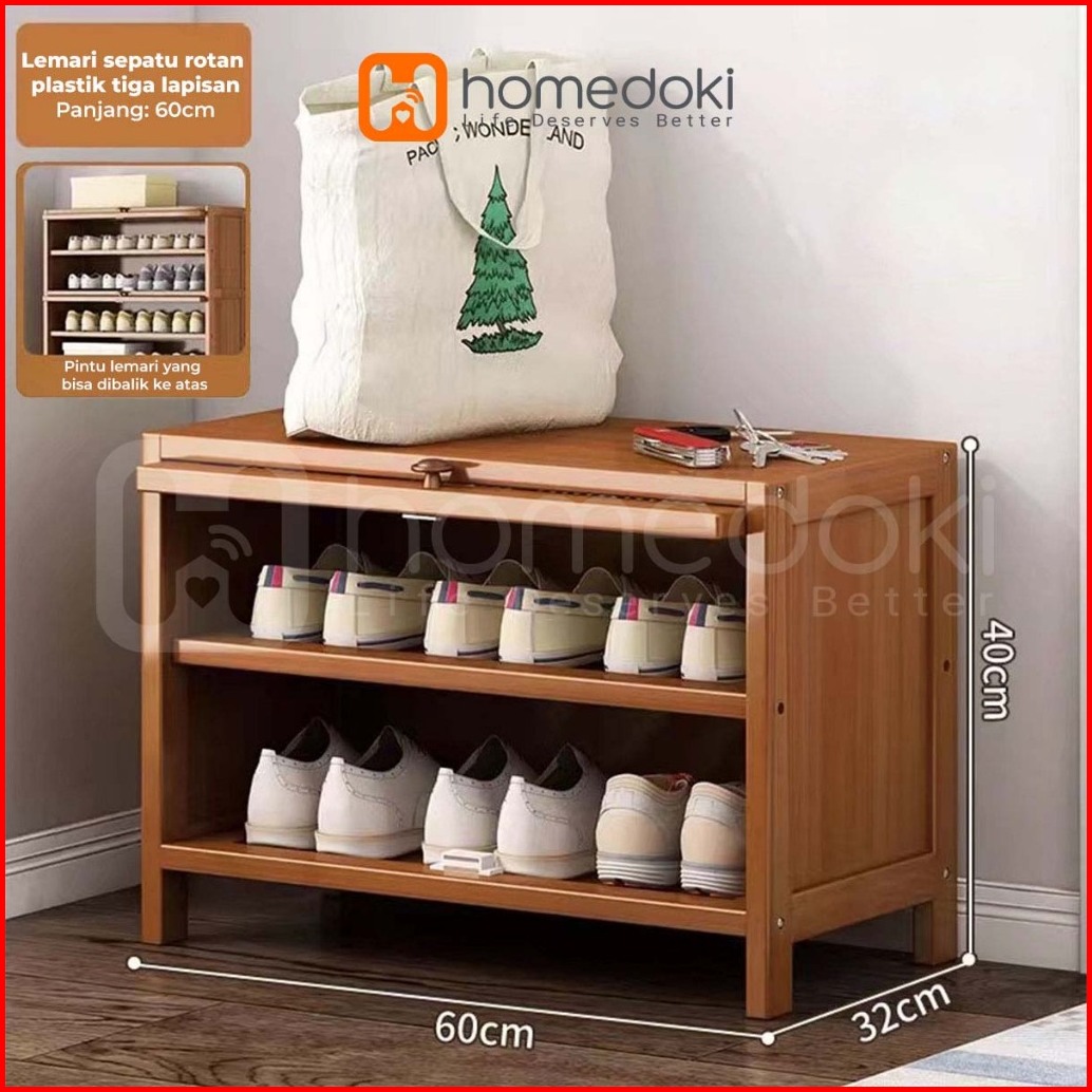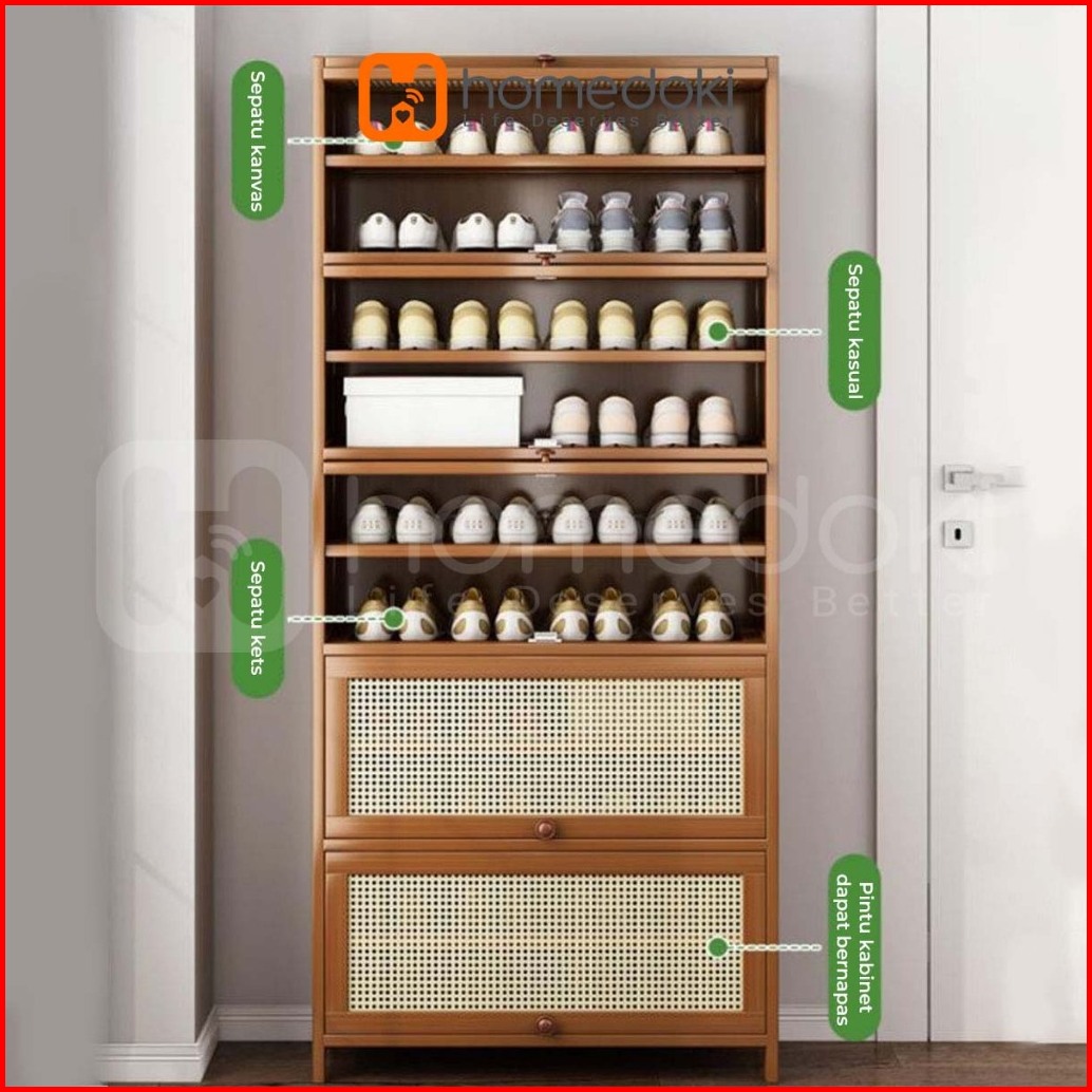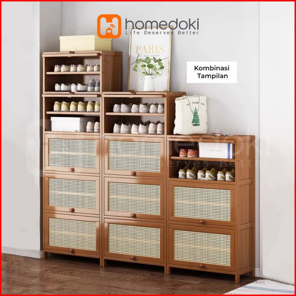 Homedoki Lemari Sepatu Lemari Sepatu Kayu Rak Sepatu Multifungsi Rak Sepatu Yang Dapat Ditumpuk Rak Kayu Jala Bernapas R