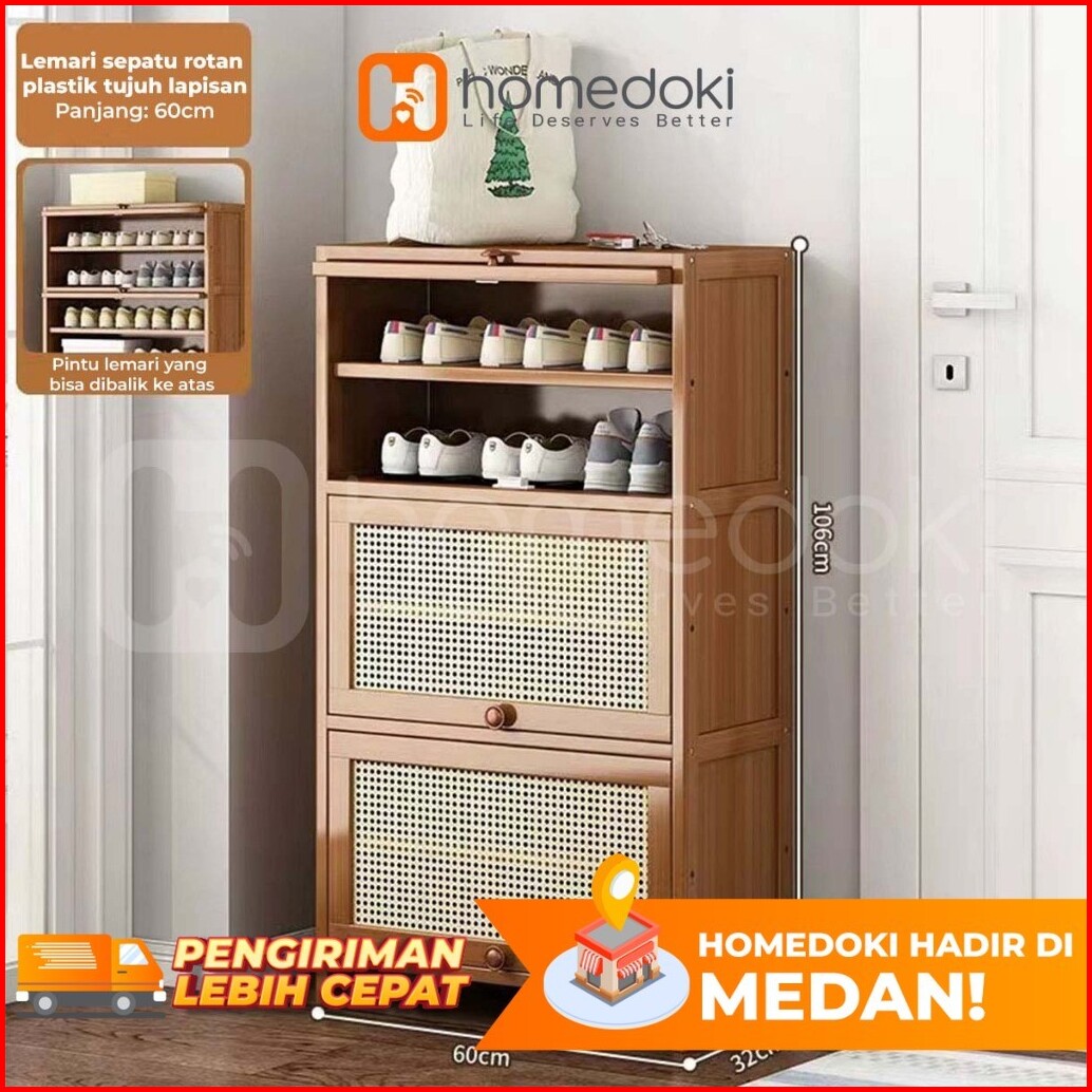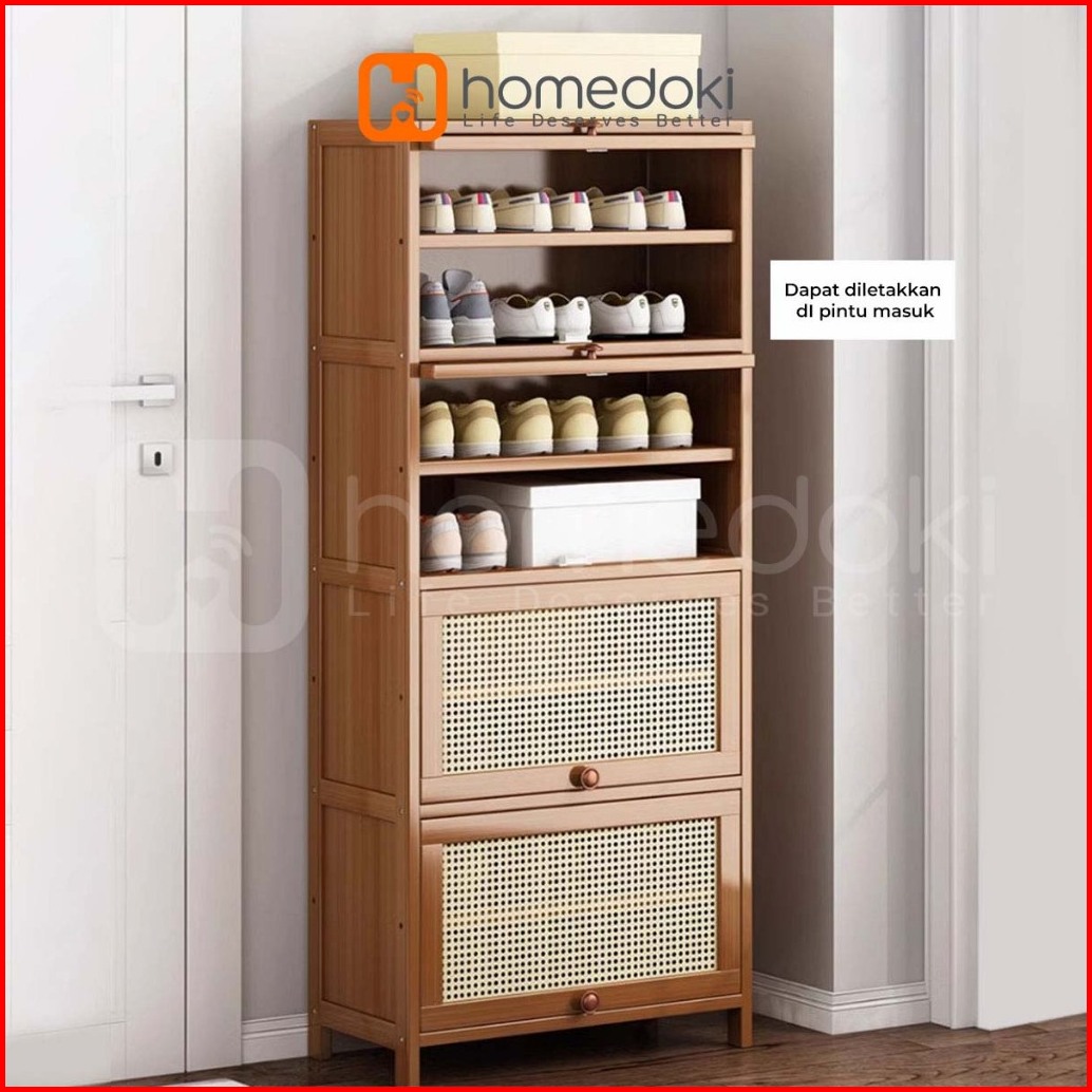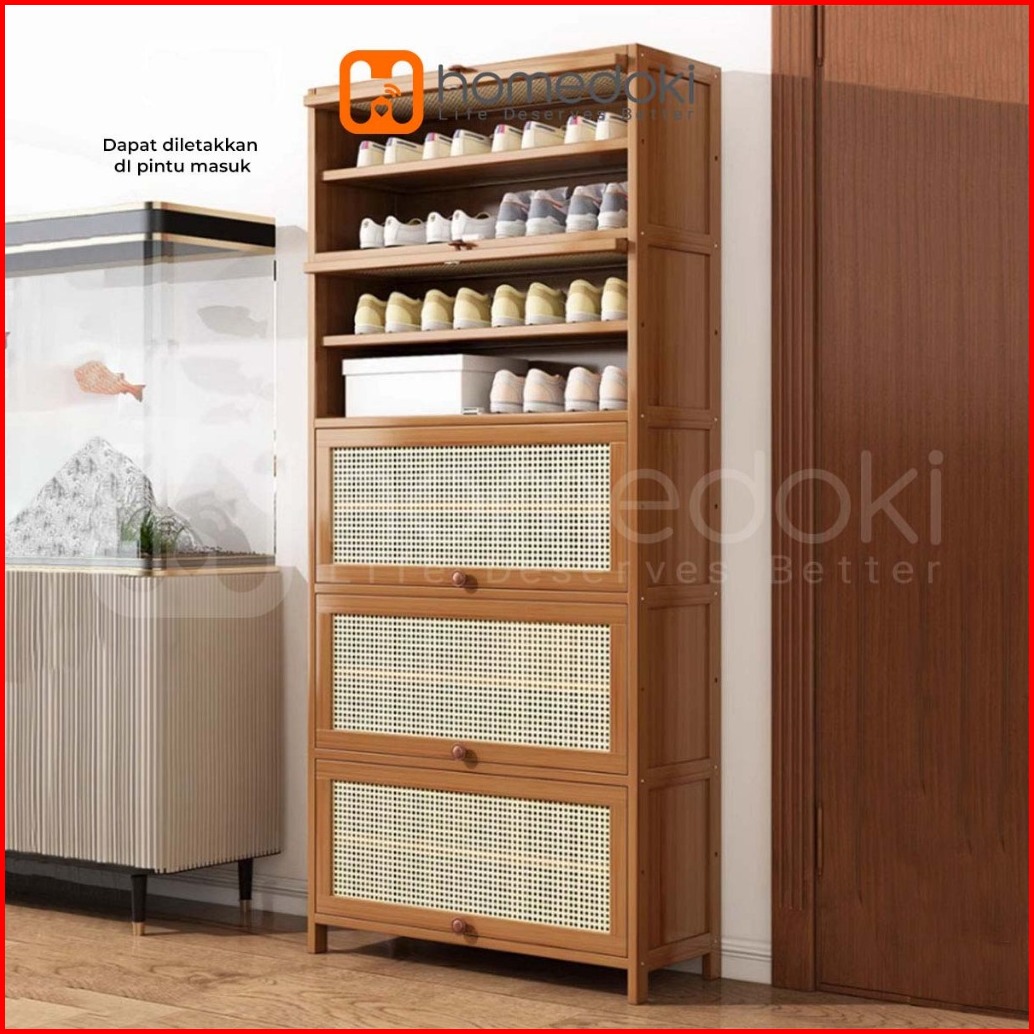 Homedoki Lemari Sepatu Lemari Sepatu Kayu Rak Sepatu Multifungsi Rak Sepatu Yang Dapat Ditumpuk Rak Kayu Jala Bernapas R