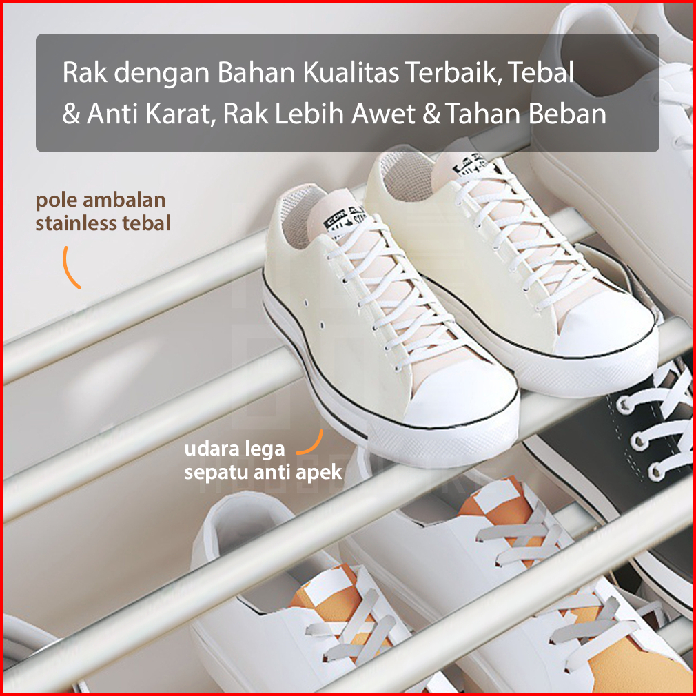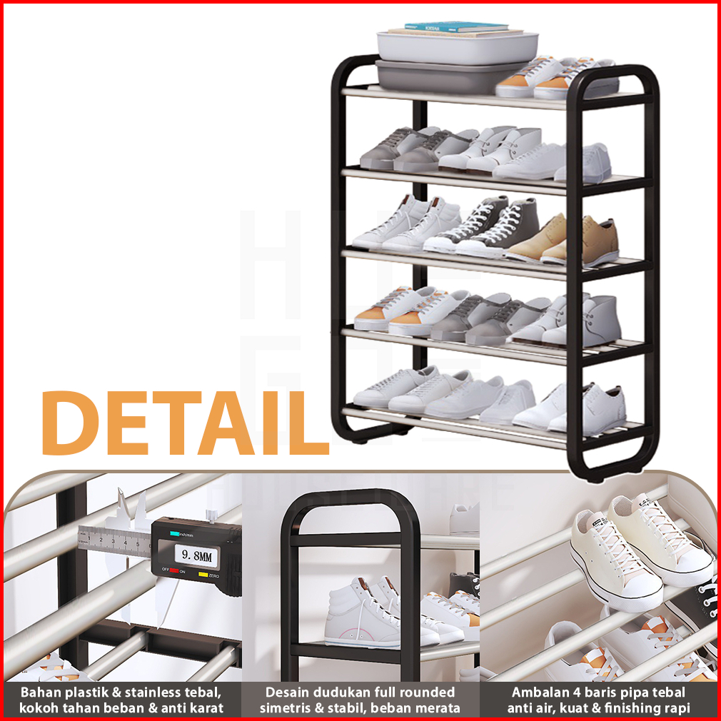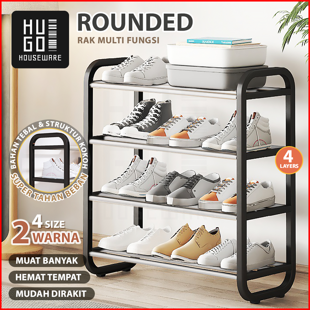 Hugo Rak Sepatu Serbaguna Portable 4 Dan 5 Susun Bahan Kuat Stainless Steel Tempat Sepatu Sandal Minimalis