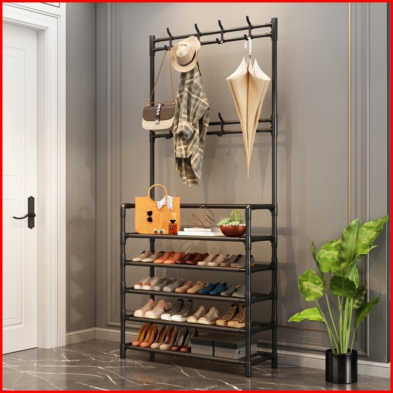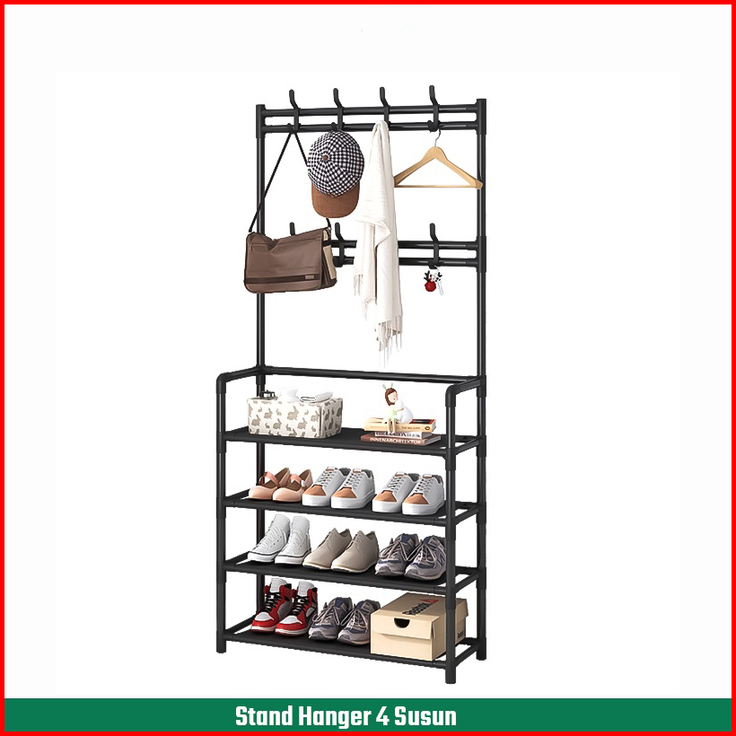 Rak Sepatu 4 Susun Gantungan Baju Tempat Penyimpanan Gantung Pakaian Tas Topi Rak Kabinet Serbaguna