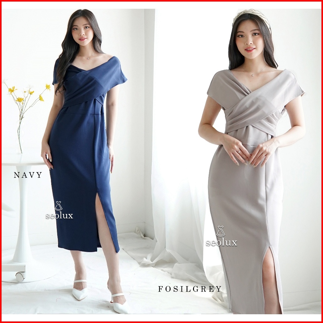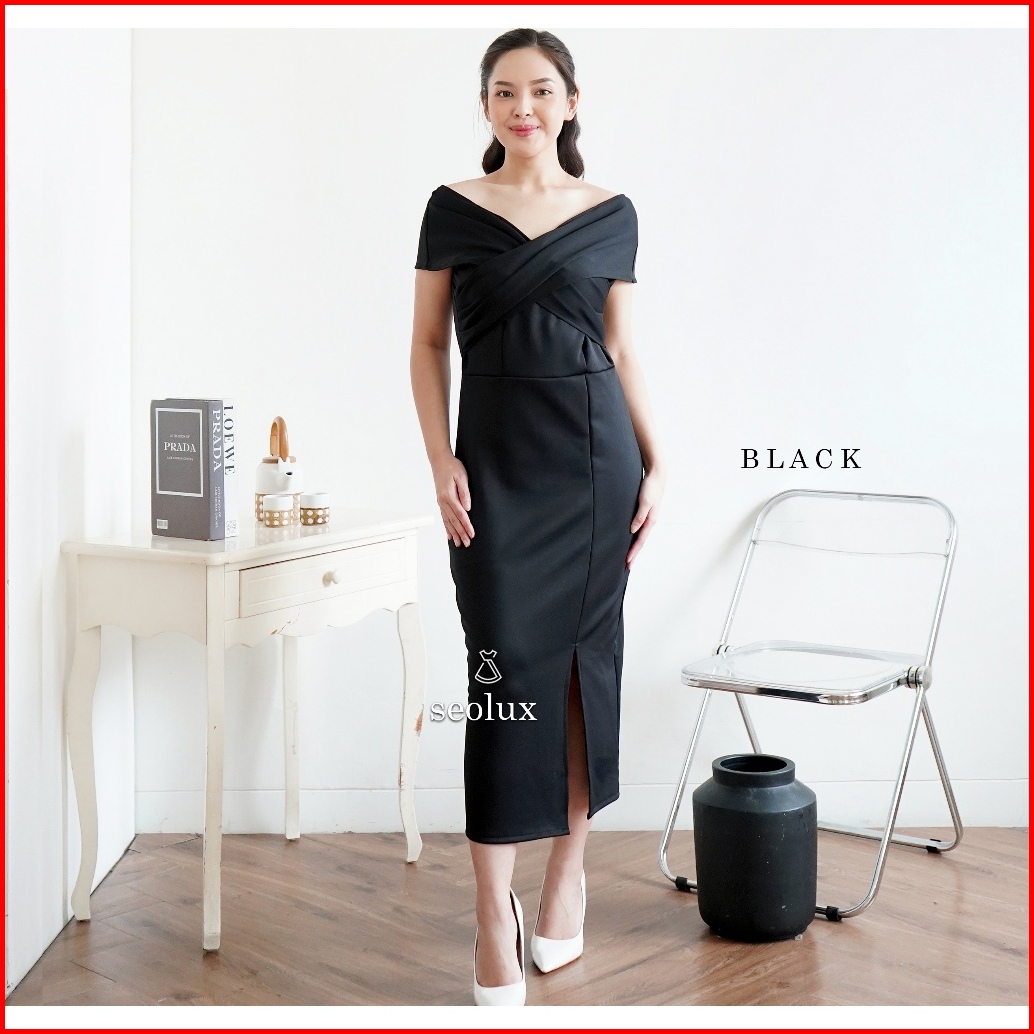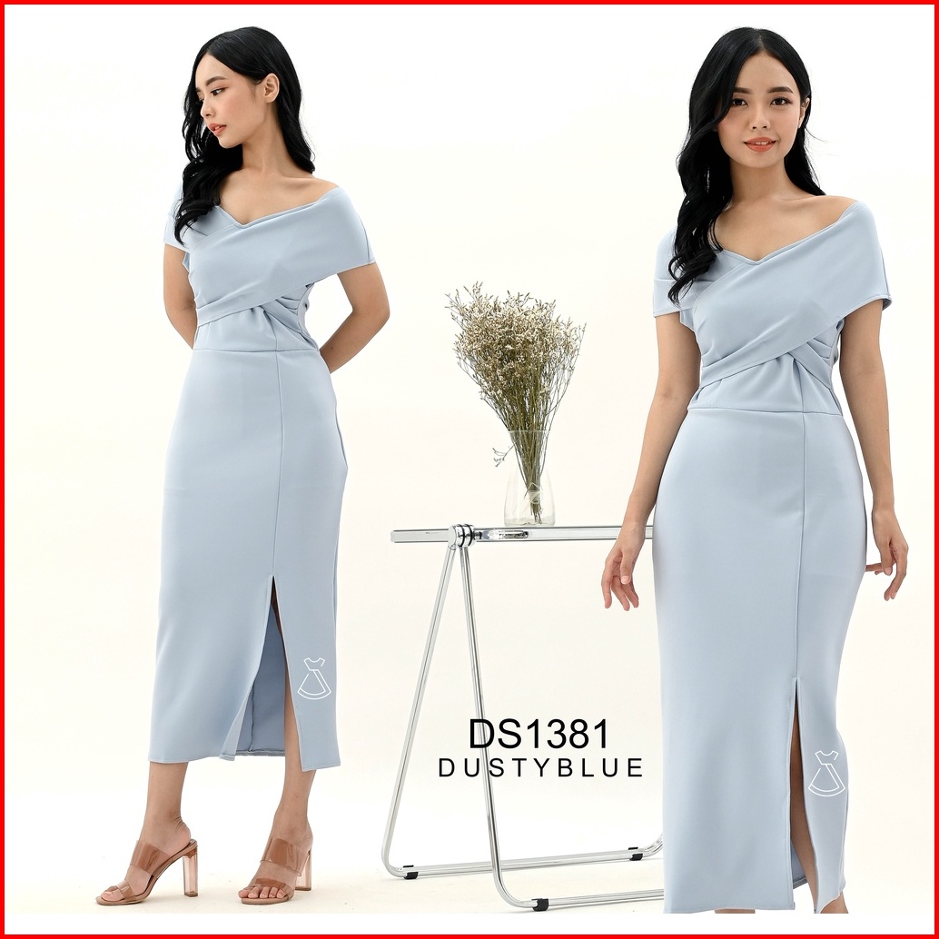 Ds1381 - Dress Pesta Sabrina Maxi Bodycon Scuba Dress Natal Wanita Modern Murah