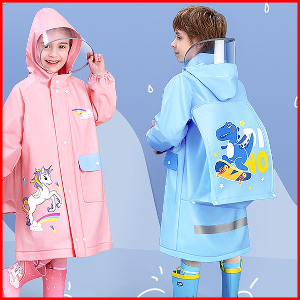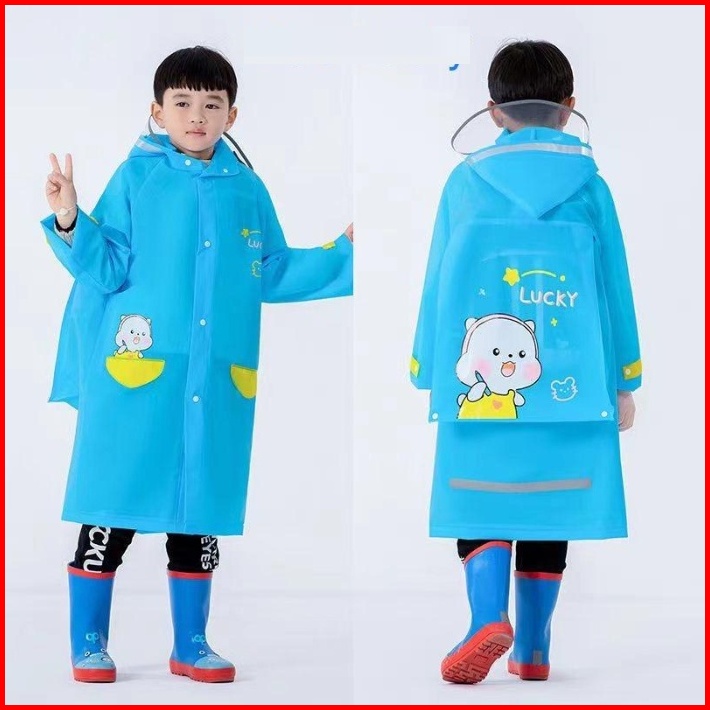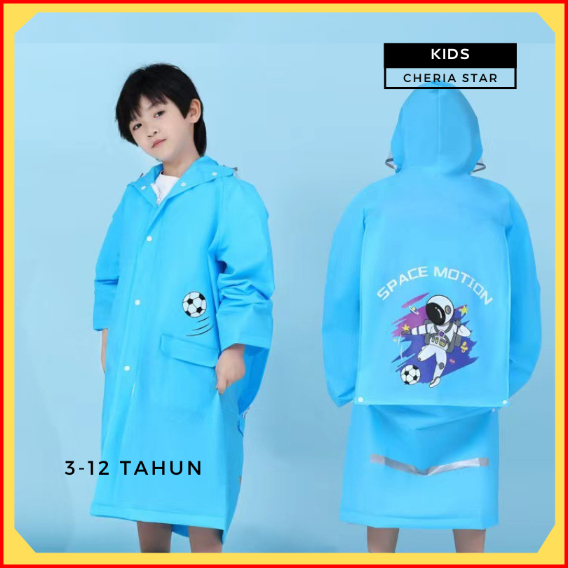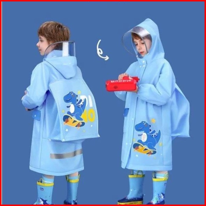 Jas Hujan Anak Laki Laki Korea Mantel Cowok Raincoat Kids Motif Biru Kucing Usia 3-12 Tahun Yw21