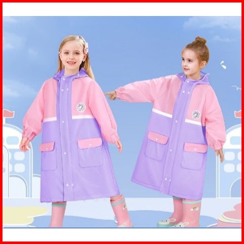 Jas Hujan Terusan Anak Model Baru Bagian Belakang Bisa Dibesarin Untuk Tas Ransel