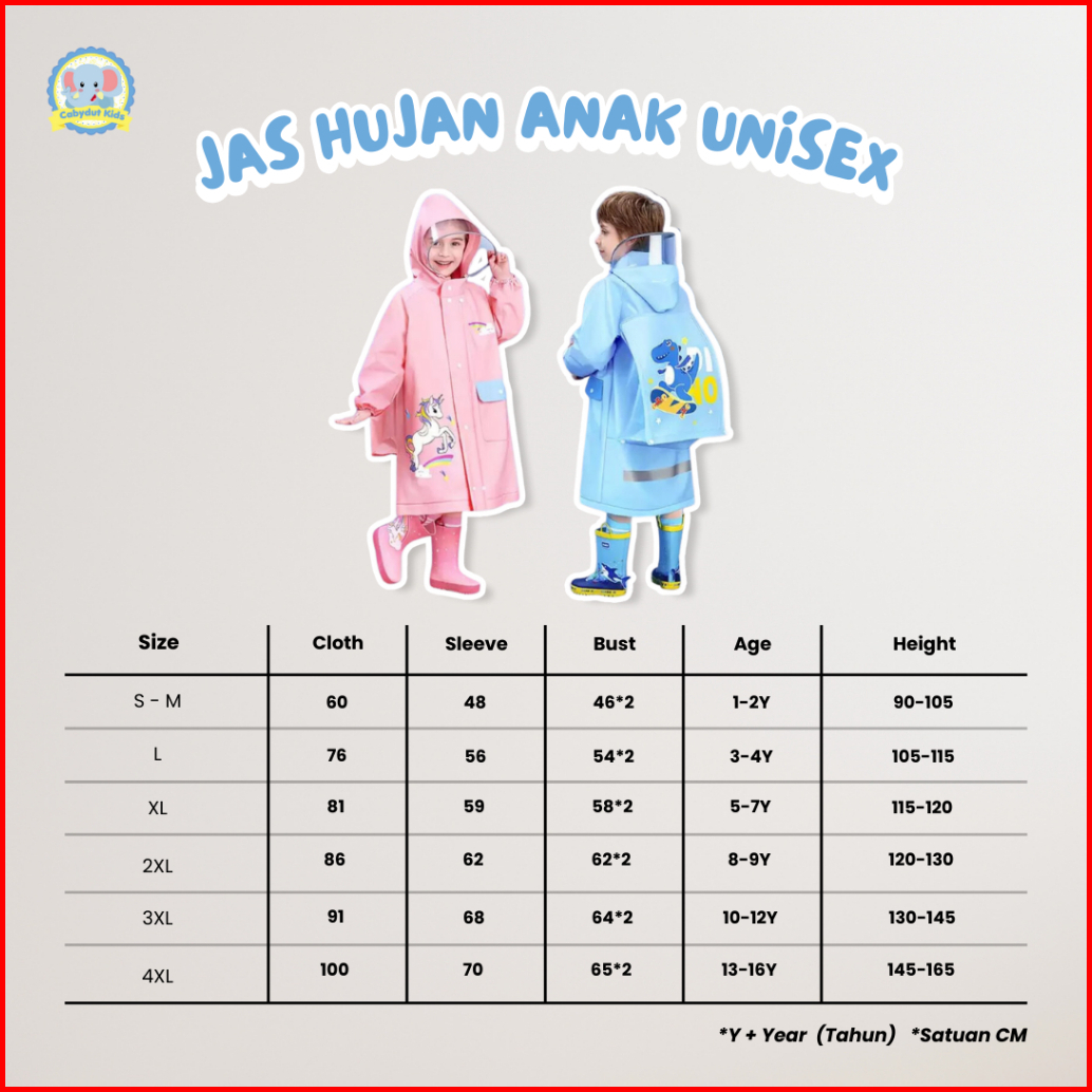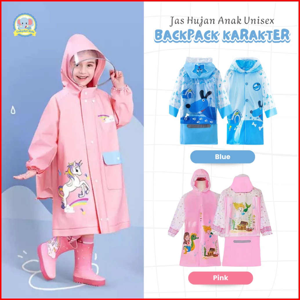 Cabydut Jas Hujan Anak Backpack Karakter Unisex Raincoat