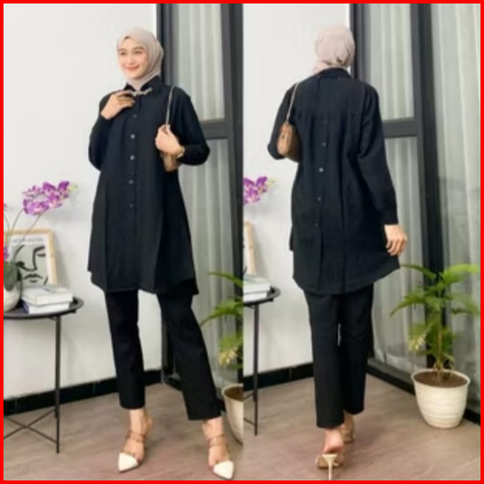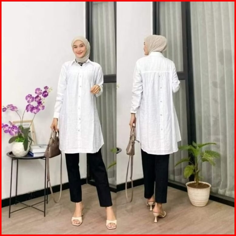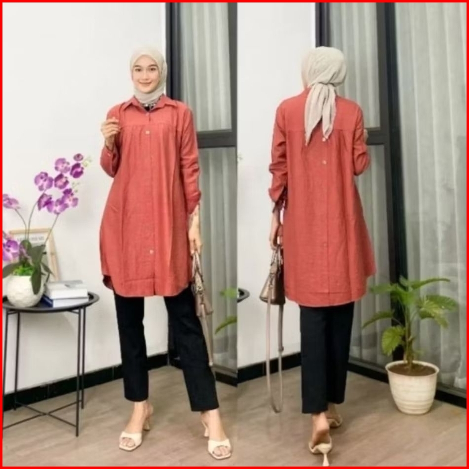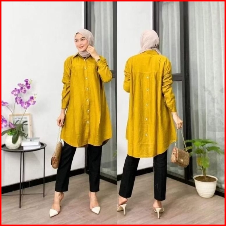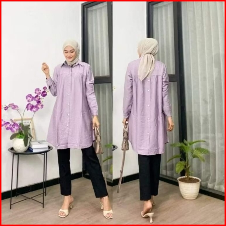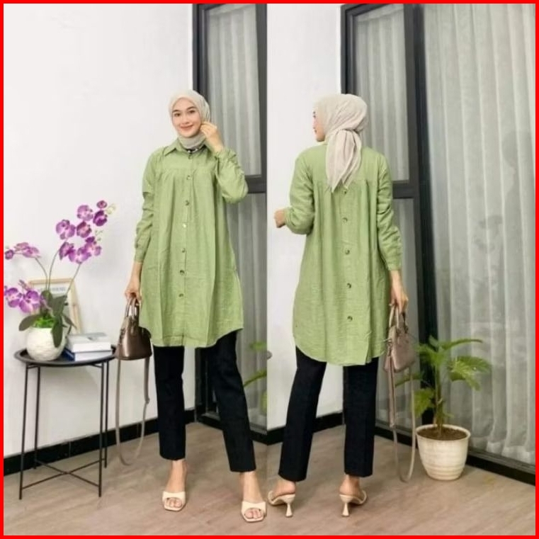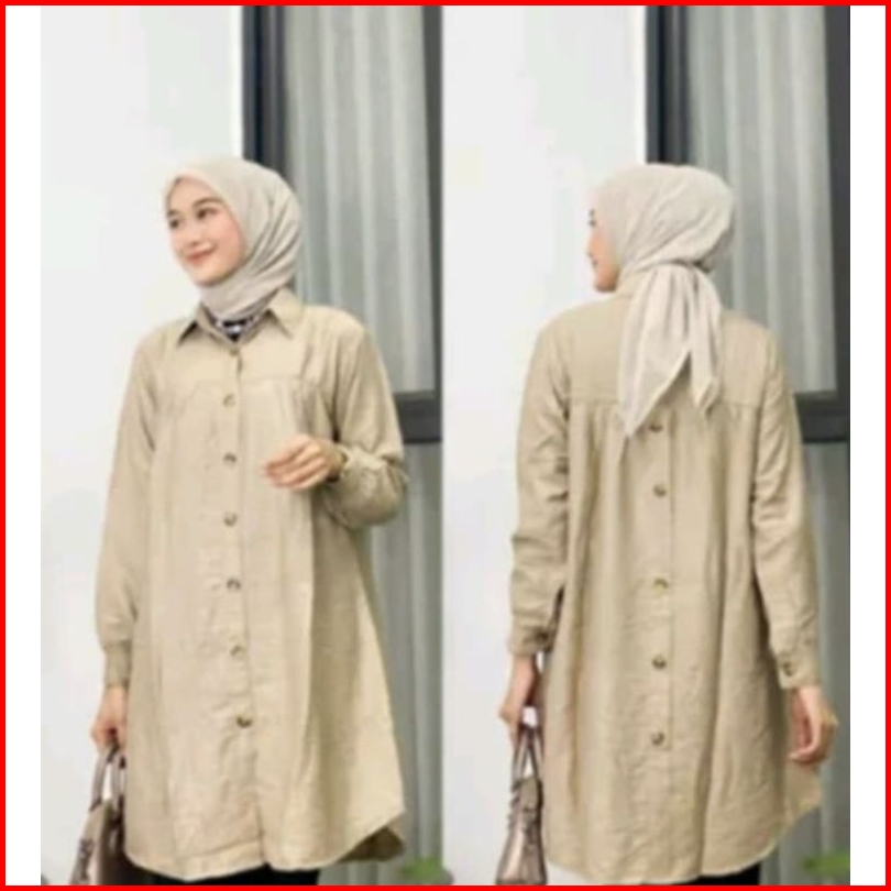 Zella Tunik Polos Ld 110cm Dan Ld 120cm Variasi Kancing Belakang Atasan Wanita Polo Linen Terbaru