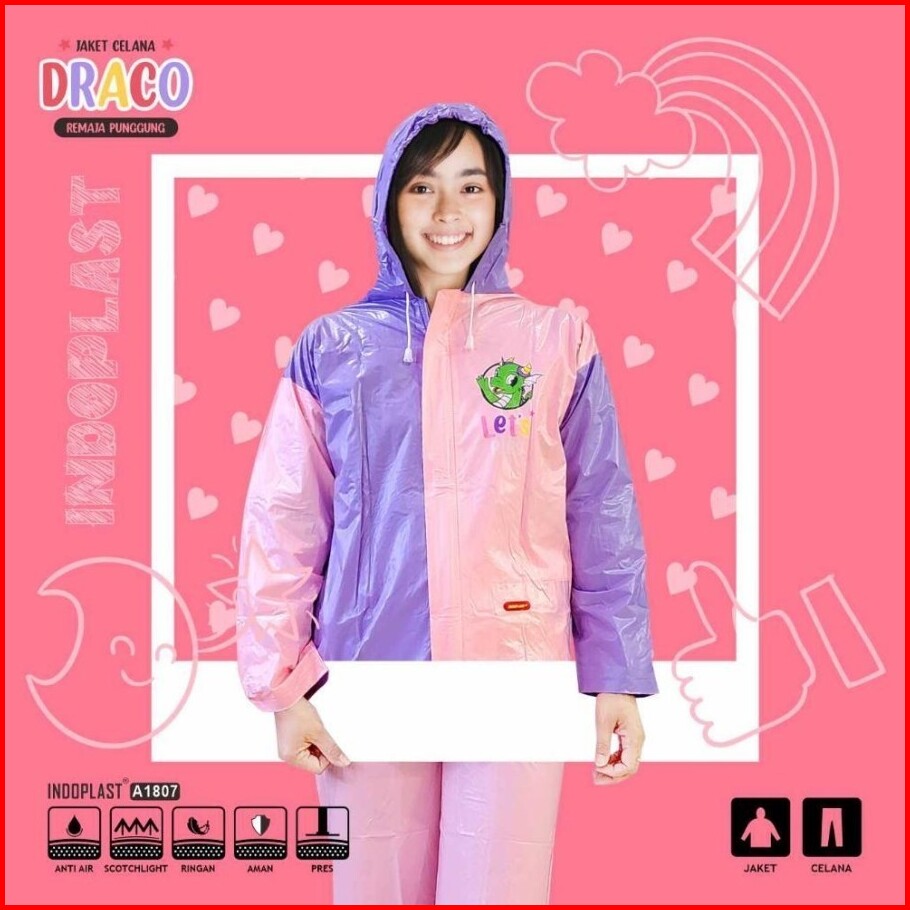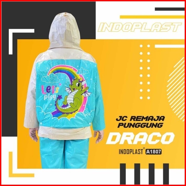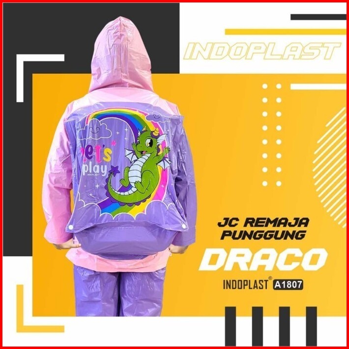 Jas Hujan Jaket Celana Anak Remaja Backpack Sekolah Motif Naga Draco