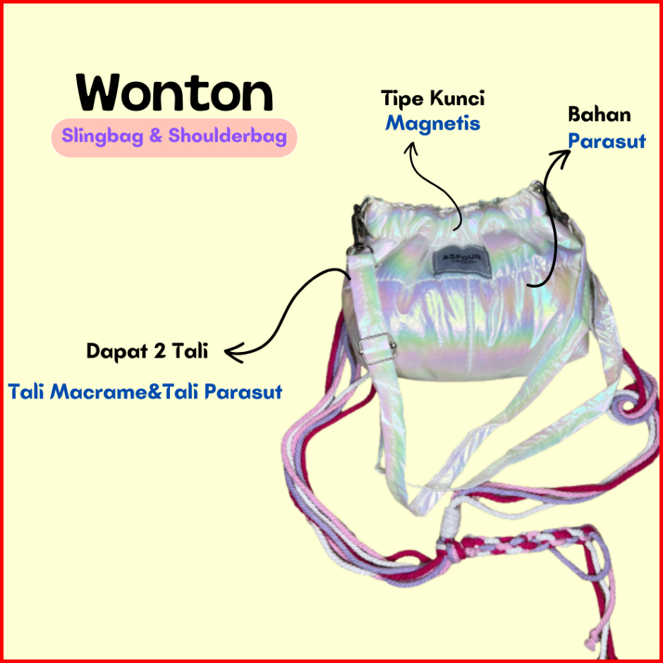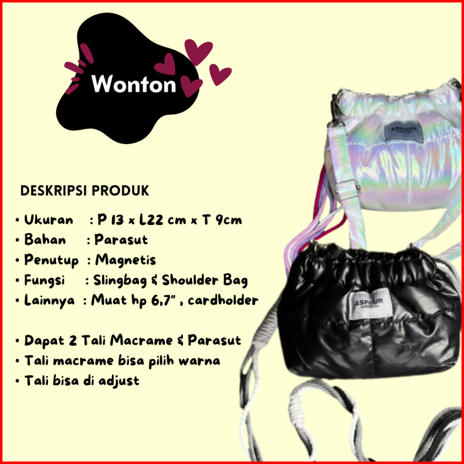 Wonton - Tas Wanita Parasut Puffy Bag Slingbag Gratis 2 Tali Tali Macrame Slingbag Wanita Anti Air