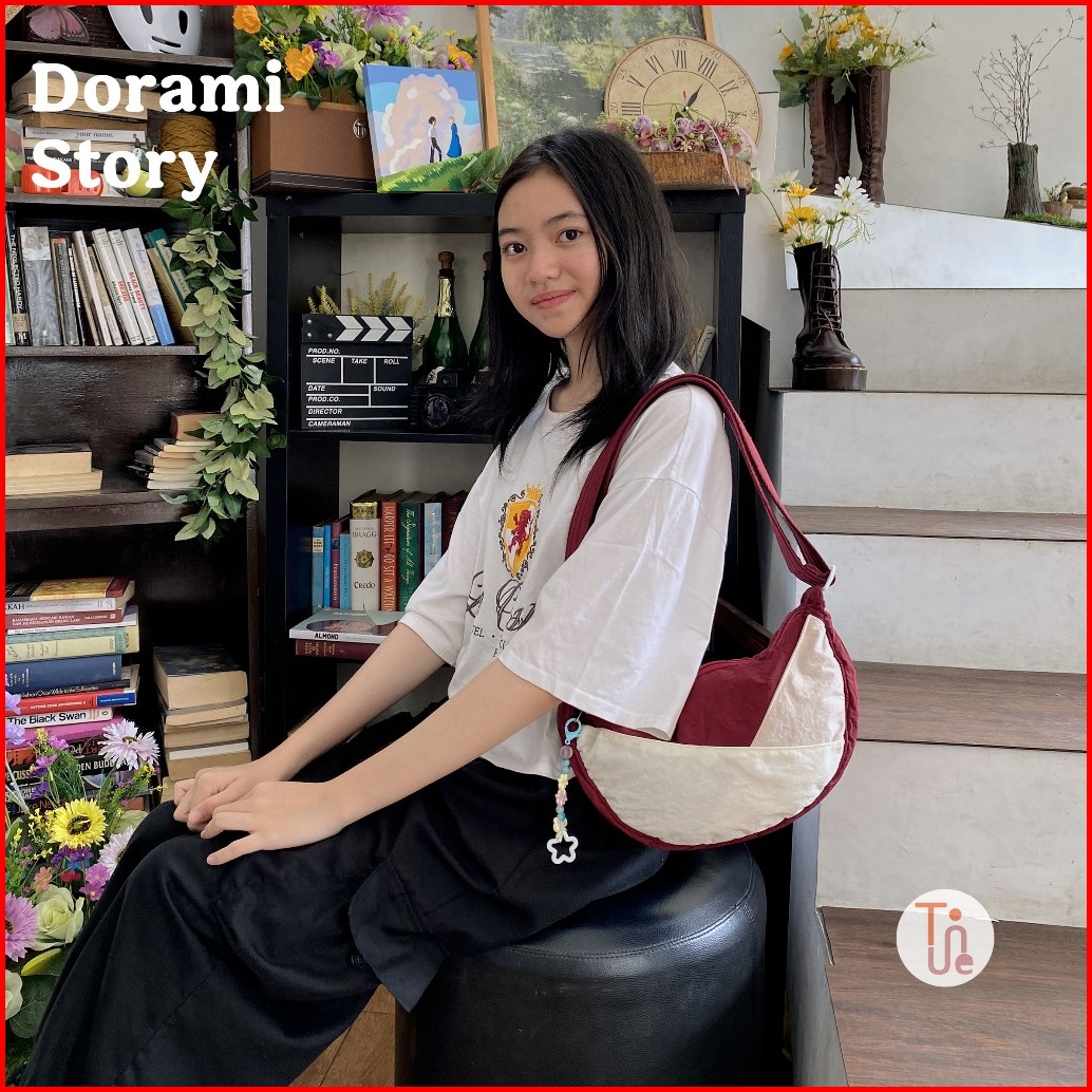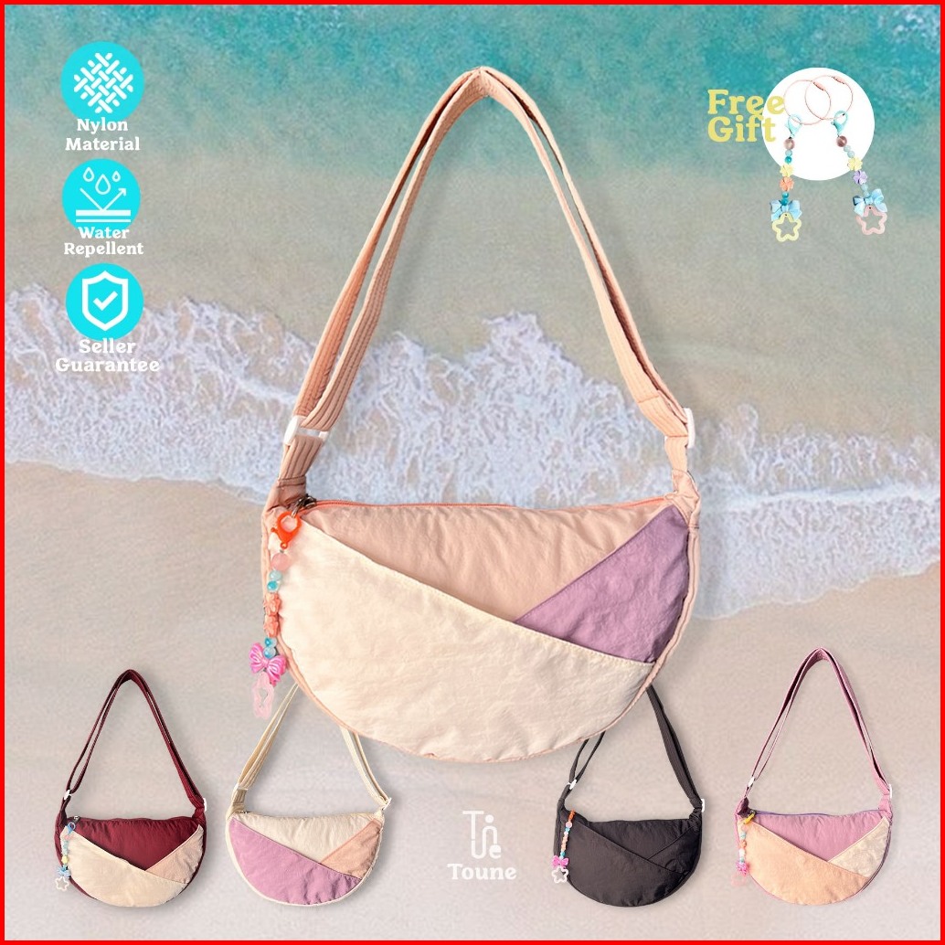 Toune Dorami Slingbag Tas Selempang Nilon Tas Wanita Tahan Air Halfmoon Bag