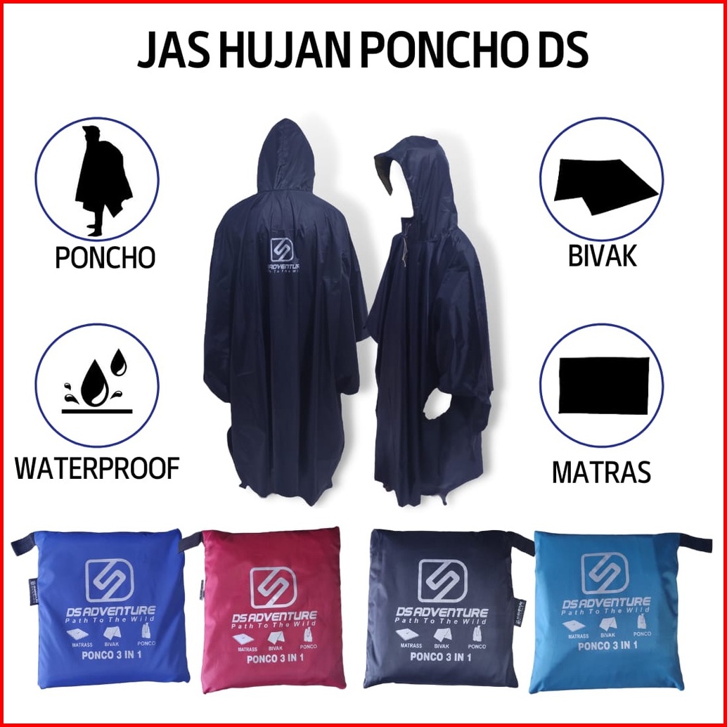 Jas Hujan Ponco 3in1 Ds Adventure Model Kelawar Bivak Alas Tenda Ponco Mantel Jas Hujan Ponco Jumbo