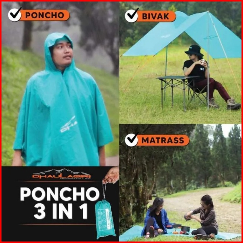 Poncho 3in1 Dhaulagiri Jas Hujan Multifungsi Ponco Rain Coat Original