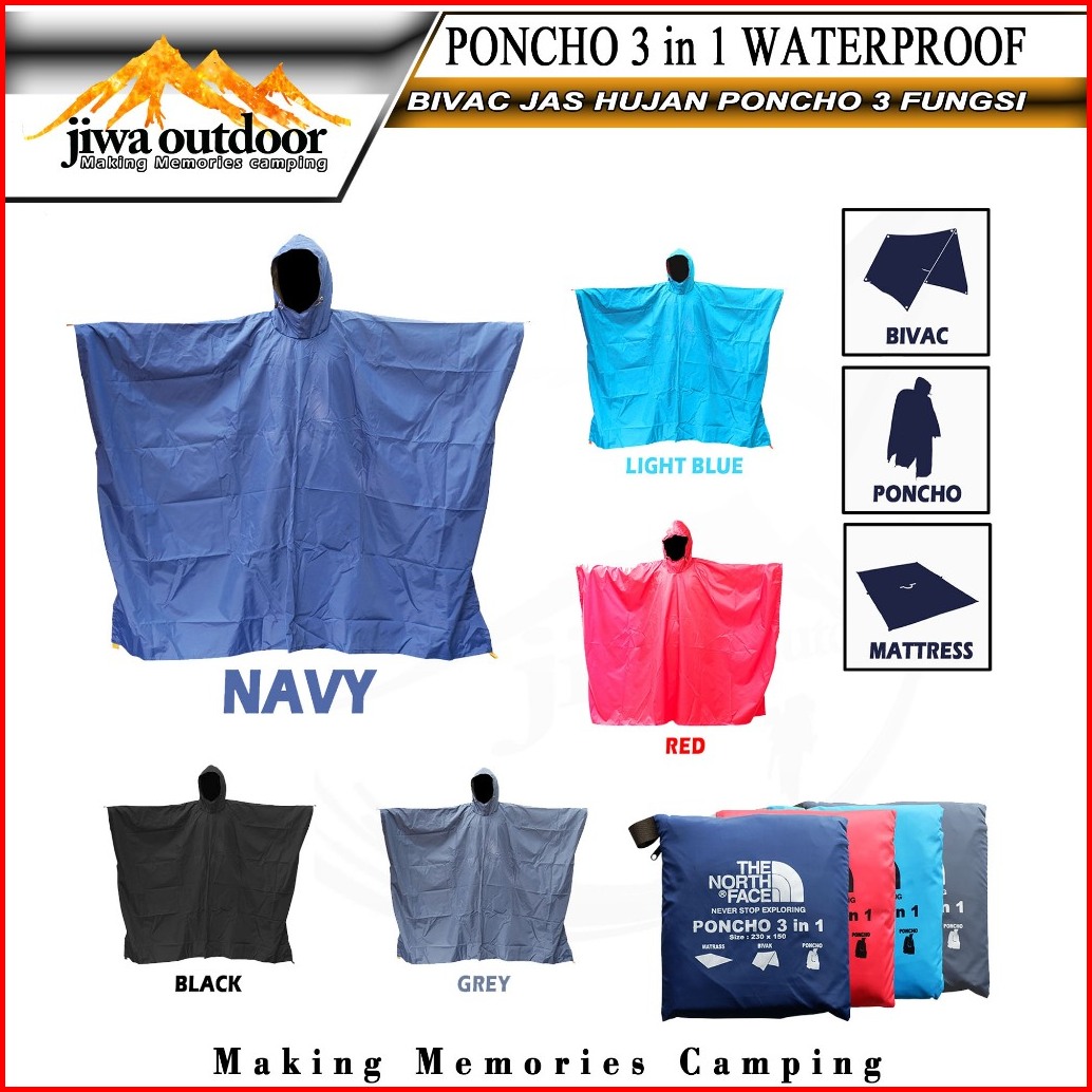 Jas Hujan Poncho 3 In 1 Jas Hujan Waterproof 3 Fungsi Ponco Kelelawar Bivac Jas Hujan Outdoor