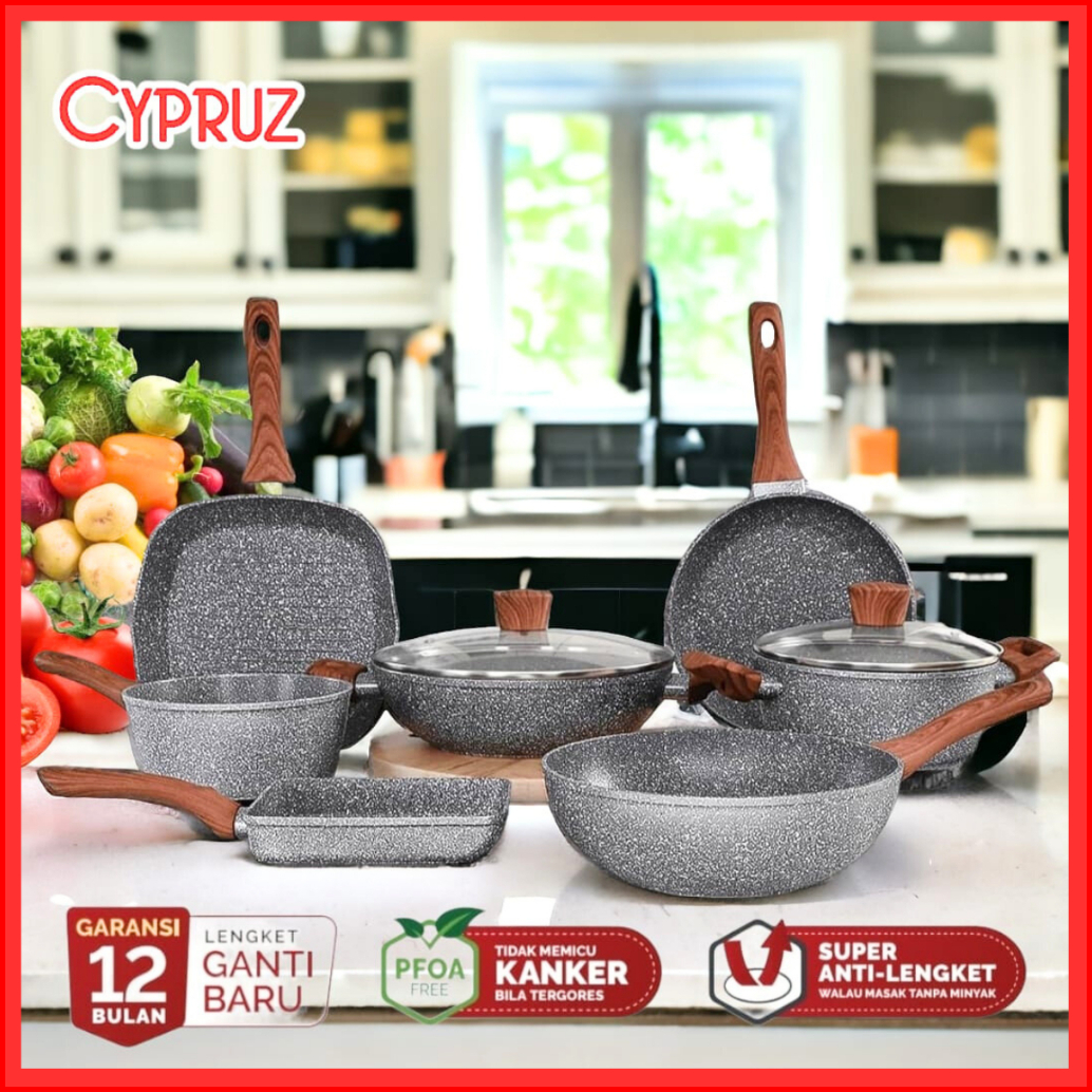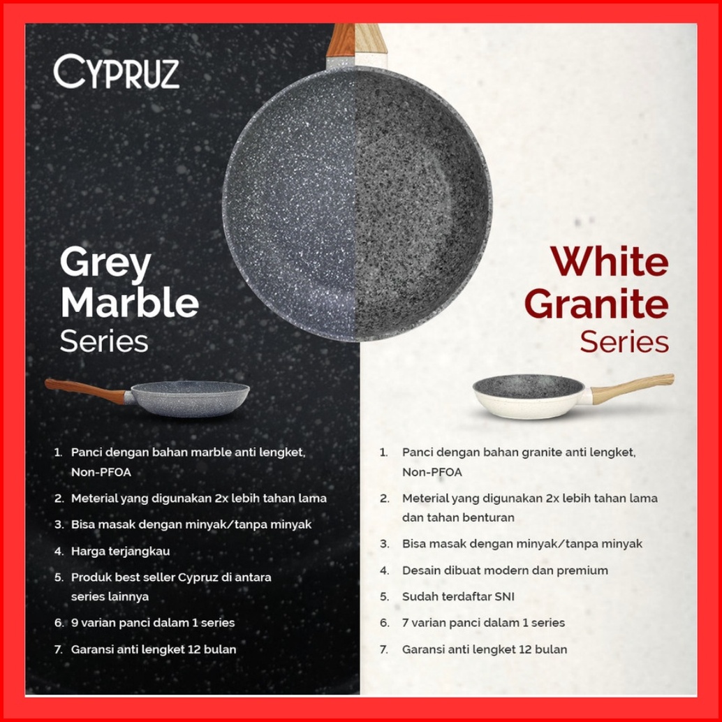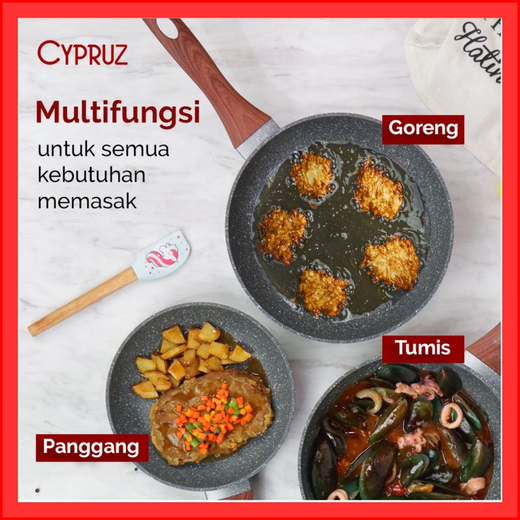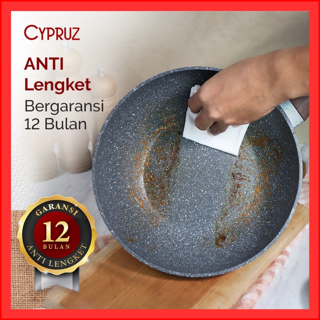 Cypruz Marble Wok Pan Marble Fry Pan Marble Sauce Pan Marble Grill Pan Tamagoyaki Wajan Anti Lengket