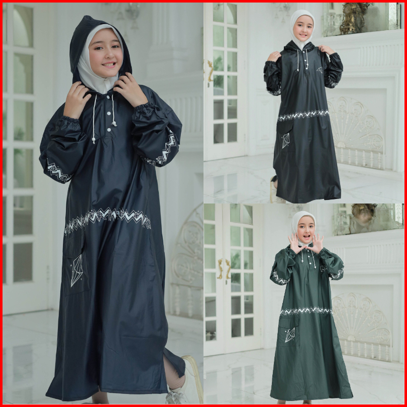 Jas Hujan Wanita Gamis Couple Ibu Anak Hkhaliza Hijaber Raincoat By Hoofla Kids
