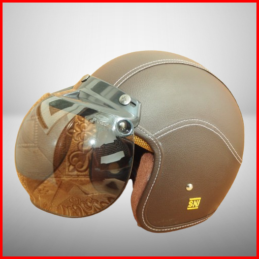 Helm Bogo Classic Bahan Kulit Sintetis Motif Jeruk Sni Dewasa Pria Dan Wanita Boggo Retro Klasik Glossy Kaca Datar Cembu