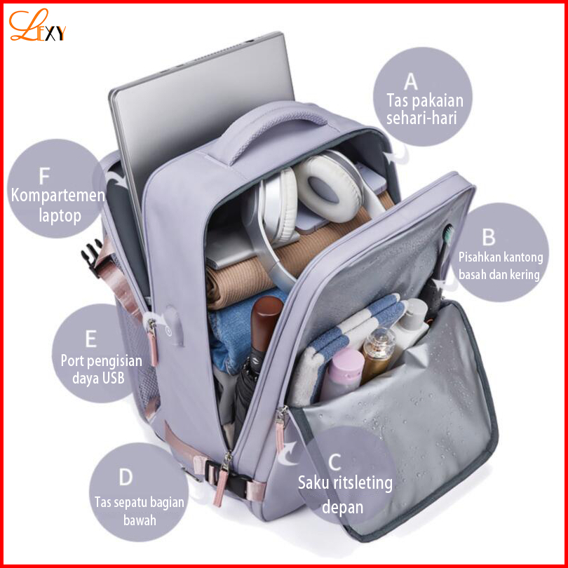 Lexy Tas Ransel Traveling Wanita Tahan Air Kapasitas Besar Outdoors Multifungs Tas Sekolah Wanita