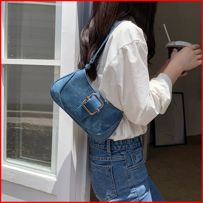 Amazefan Tas Tangan Wanita Tas Denim Tas Bahu Elegan Tas Pesta Tas Sederhana Tas Suspender Wanita Elegan