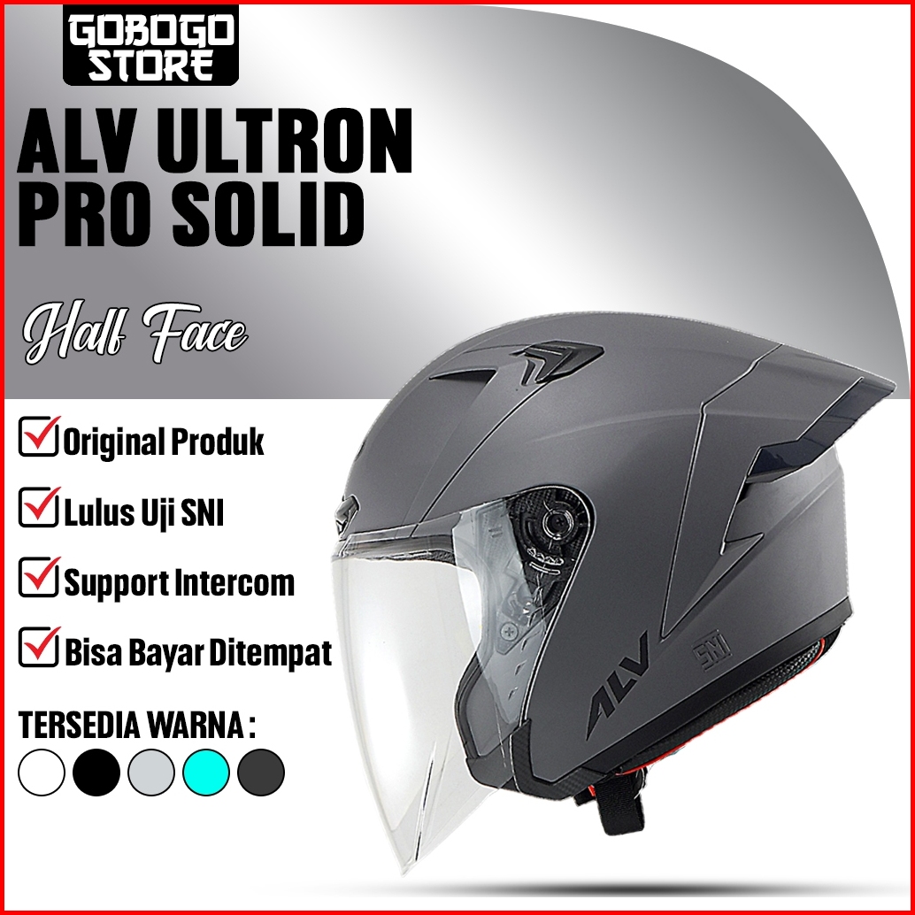 Helm Alv Ultron Pro Solid Kaca Single Visor Helm Half Face Pria Dan Wanita Dewasa Original Sni