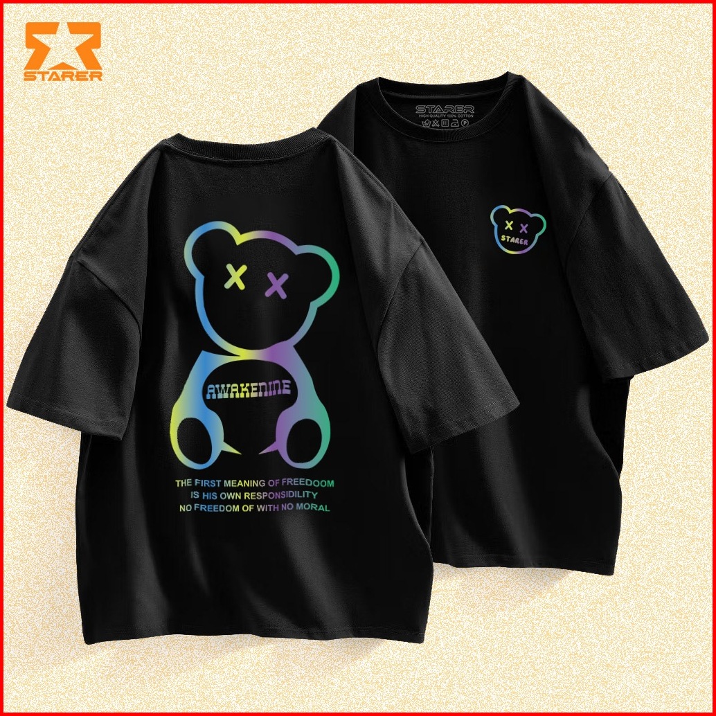 Starer Kaos Pria Baju Distro Lengan Pendek Vintage Cotton Uniseks Black T-shirt Oversize Sablon 0020