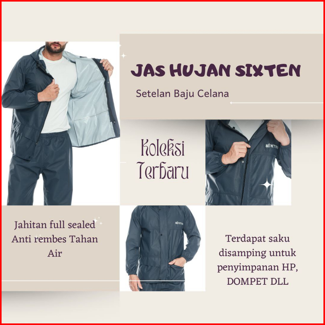 Jas Hujan Stelan Jaket Celana Sixten Pria Wanita Dewasa Bahan Taslan Import