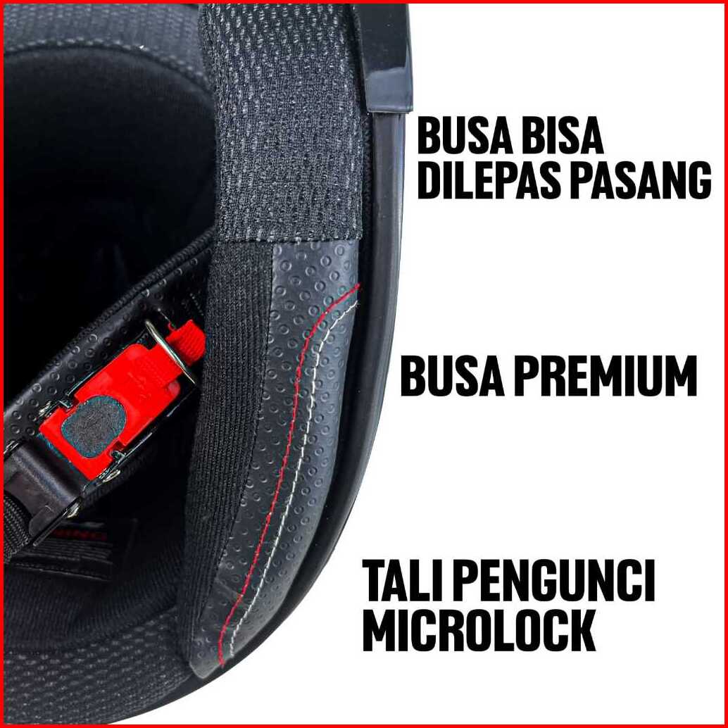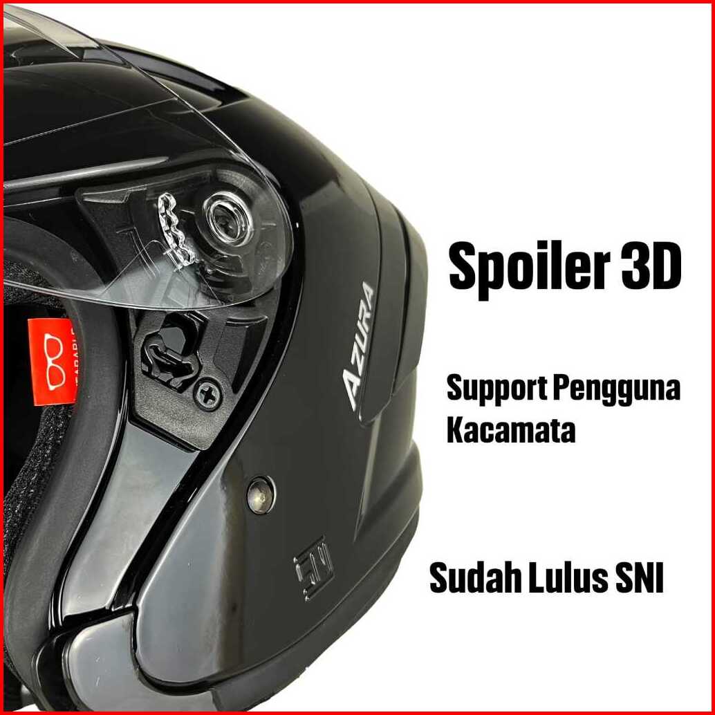 Helm Niels Azura Half Face Solid Paket Ganteng Free Spoiler - Original - Sni Kaca Smoke Bening