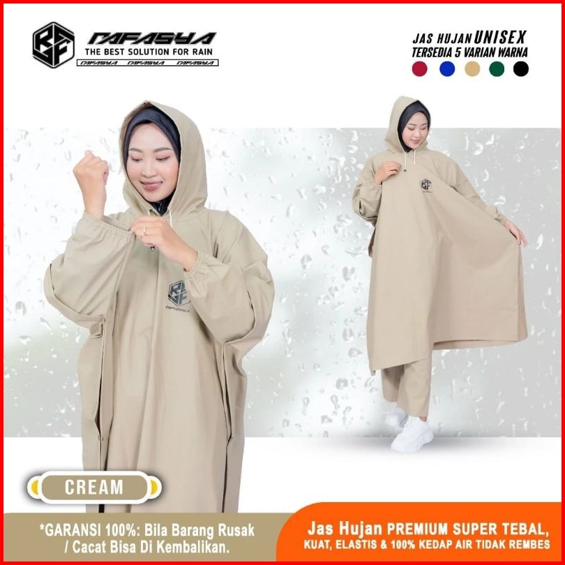 Jas Hujan Setelan Ponco Celana Mantel Premium Anti Rembes Kelelawar Cream By Rafasya