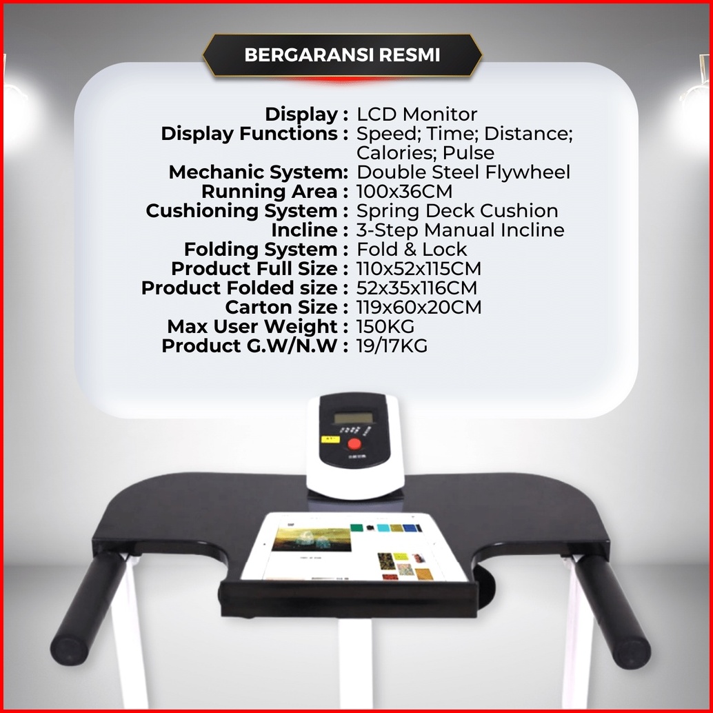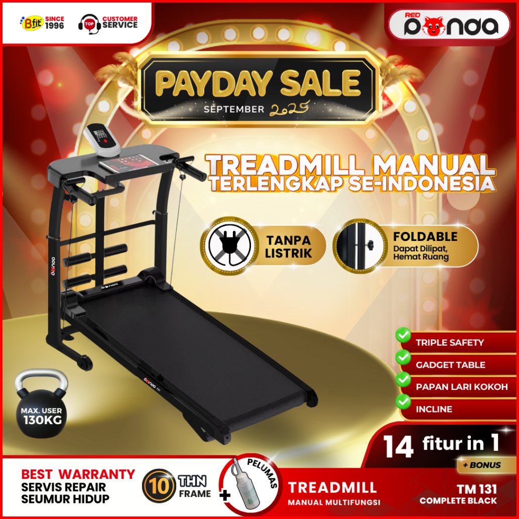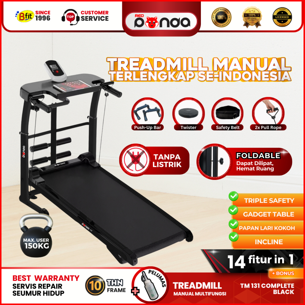 Treadmill Manual Redpanda 131 Multifungsi Tanpa Listrik Lipat Portable Low Watt Fitness Gym