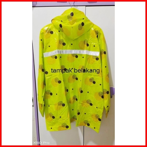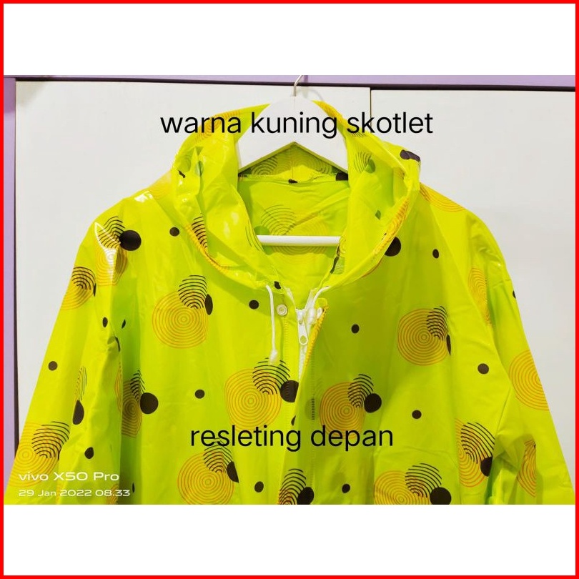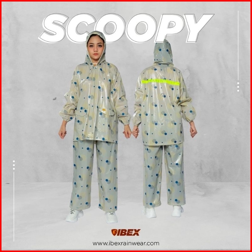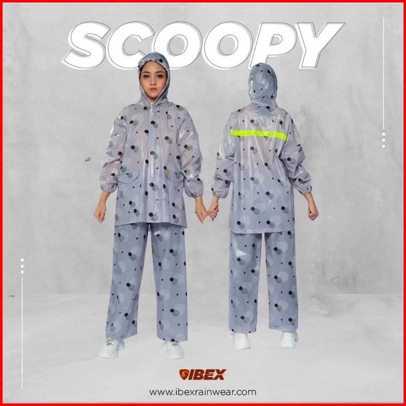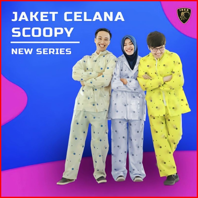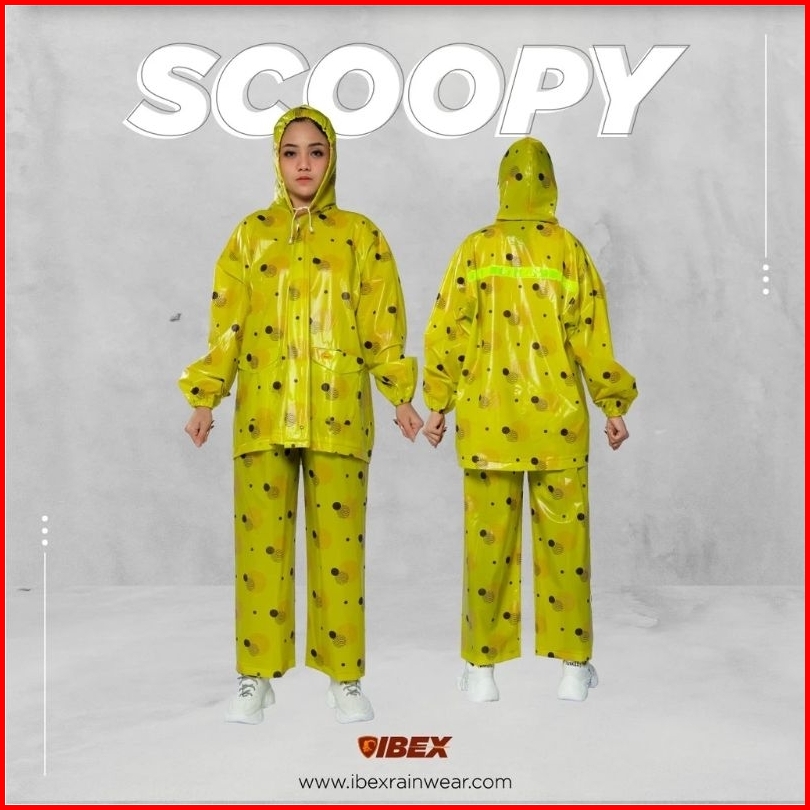 Jas Hujan Jaket Celana Scoopy Motif Polkadot Transparan Bahan Pvc Semi Karet Merk Ibex