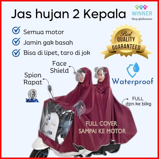 Mantel Hujan 2 Kepala Jas Hujan Motor Dua Orang Jumbo Full Body Motor Double Ponco 2 Kepala Besar
