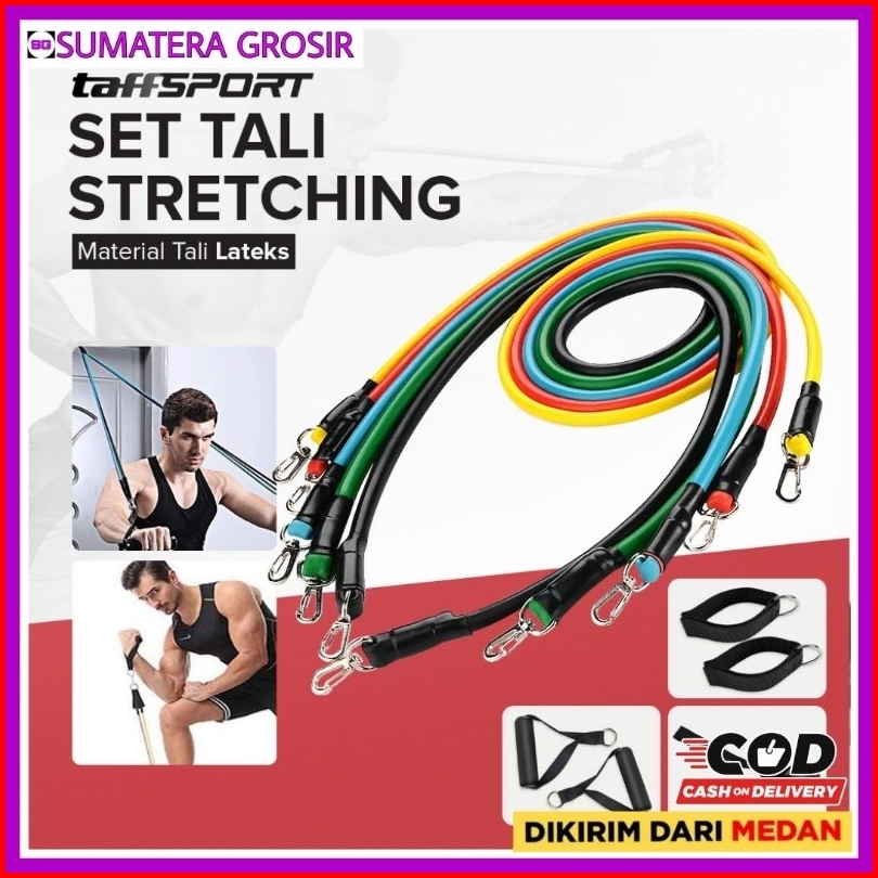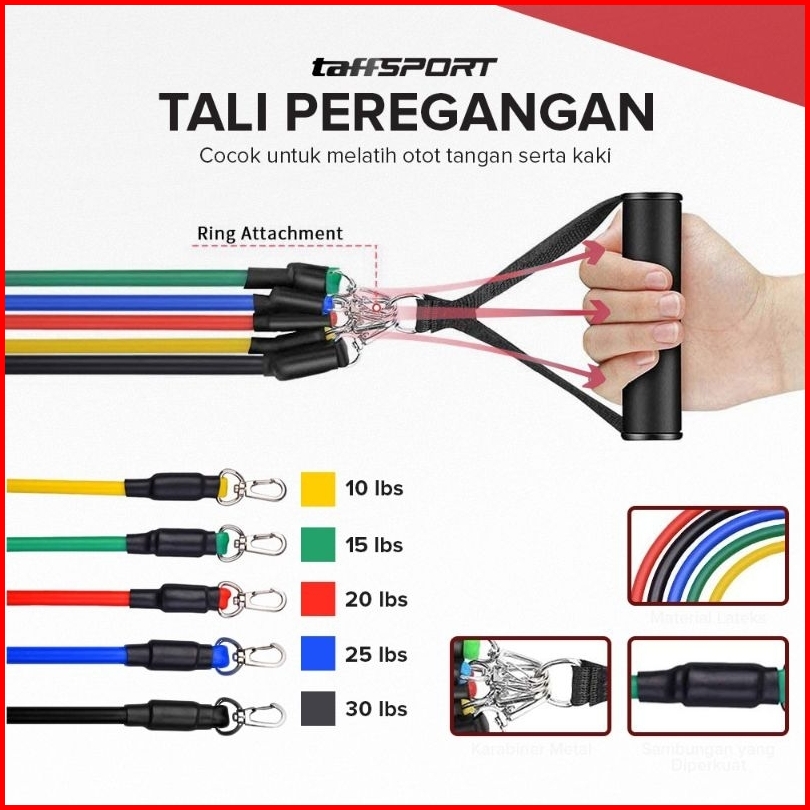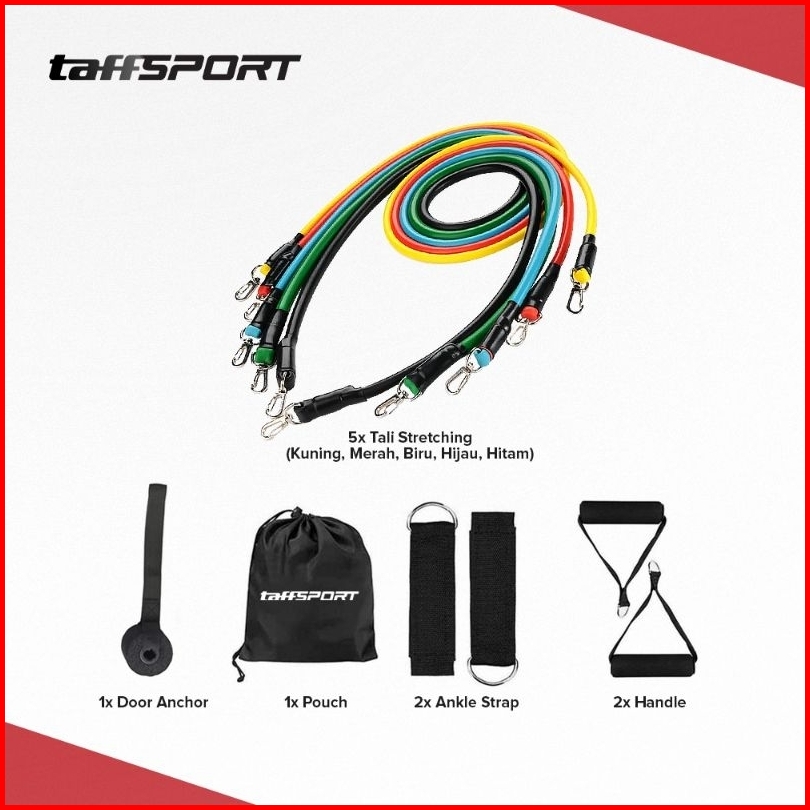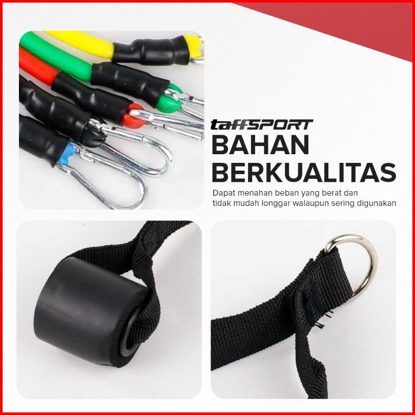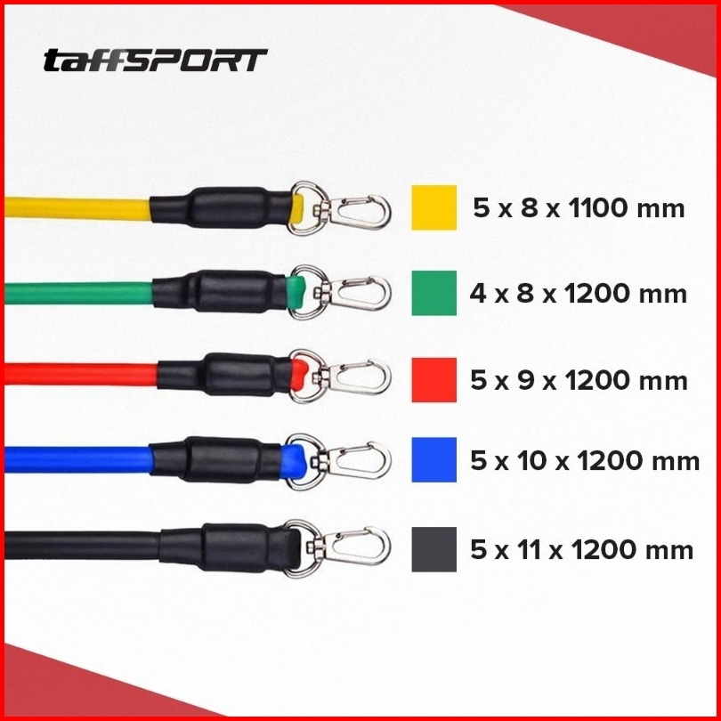 Taffsport 11 In 1 Tali Stretching Resistance Band Pilates Tube Yoga Fitness 11 Set - Alat Olahraga Dirumah Tali Karet Ro