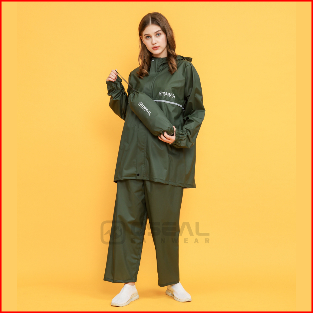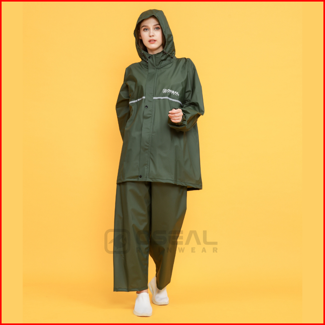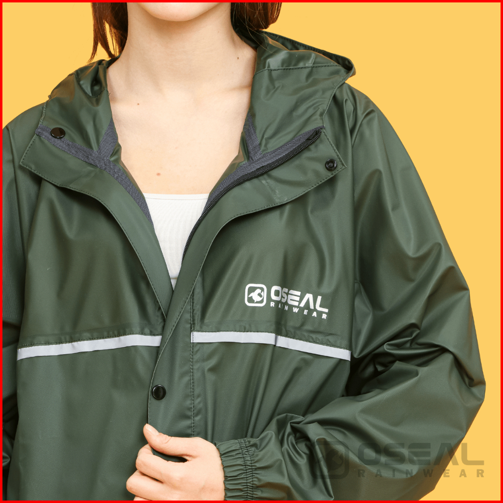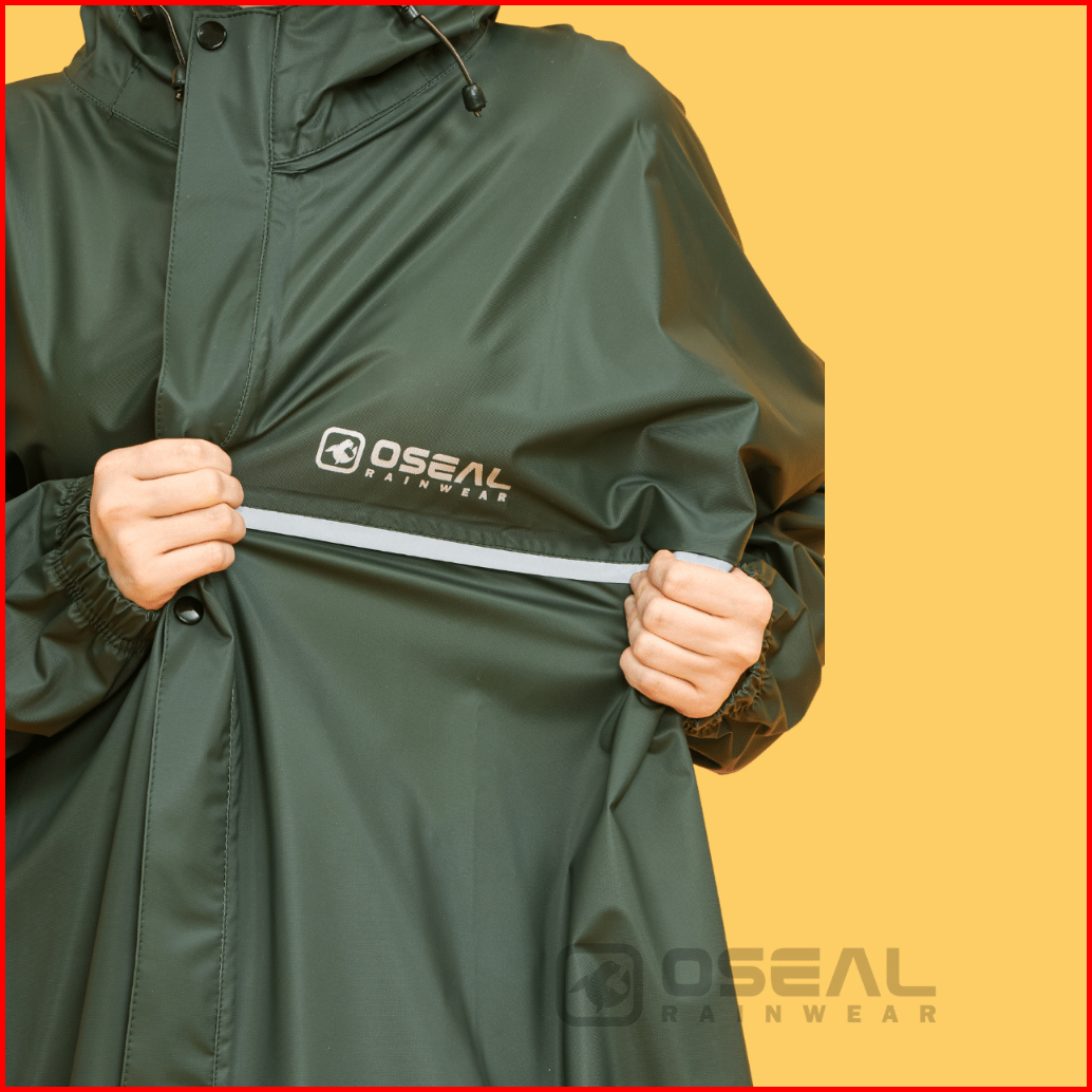 Oseal Jas Hujan Raincoat Mantol Pria Wanita Dewasa Full Seal Reflective Hijau