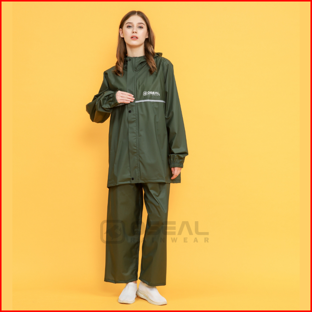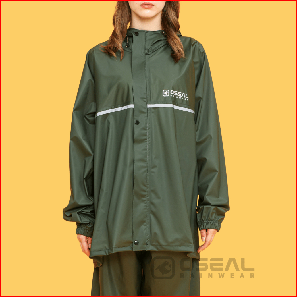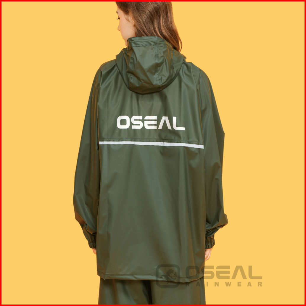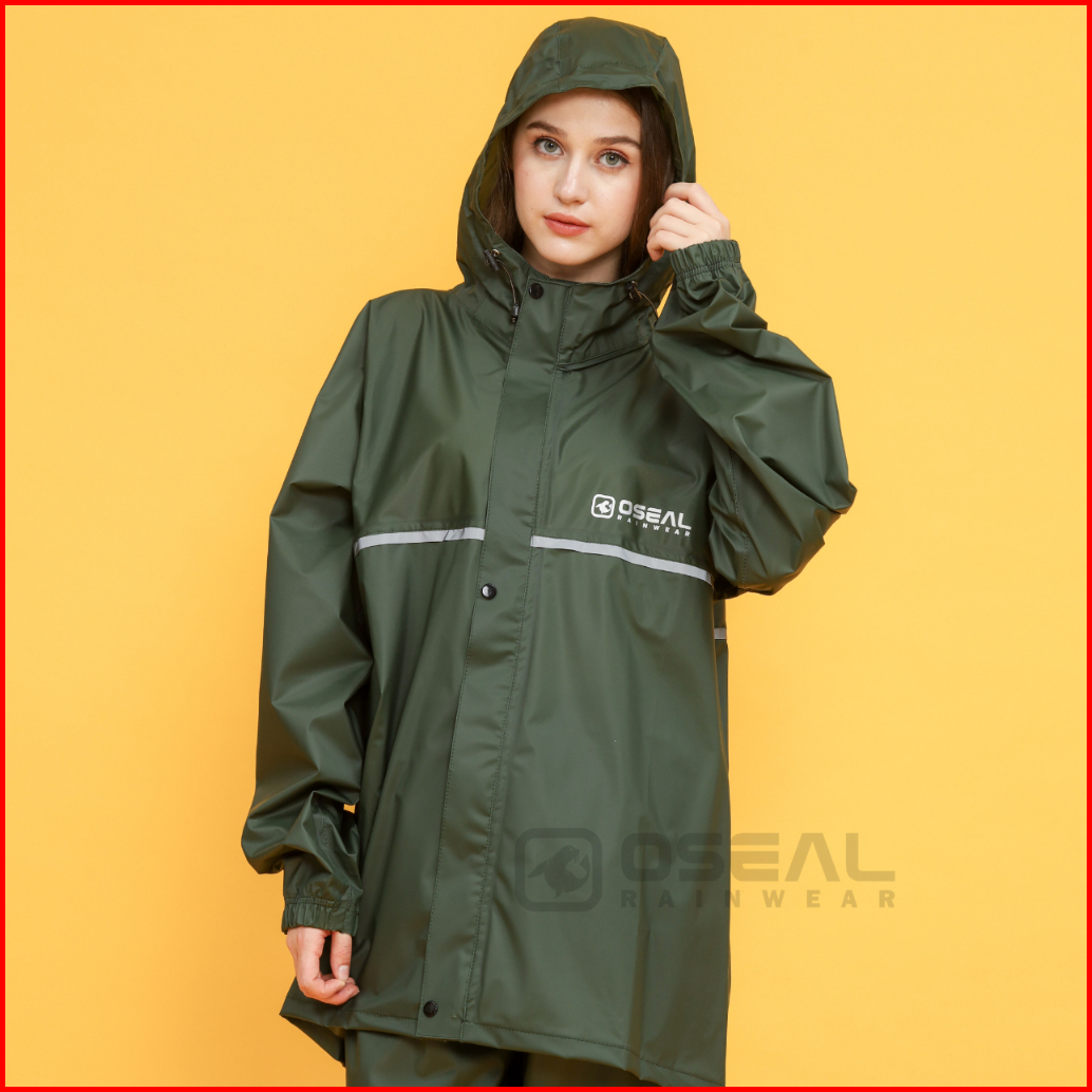 Oseal Jas Hujan Raincoat Mantol Pria Wanita Dewasa Full Seal Reflective Hijau
