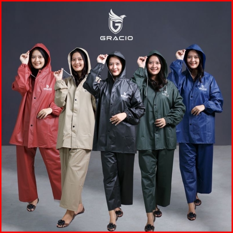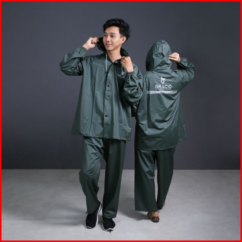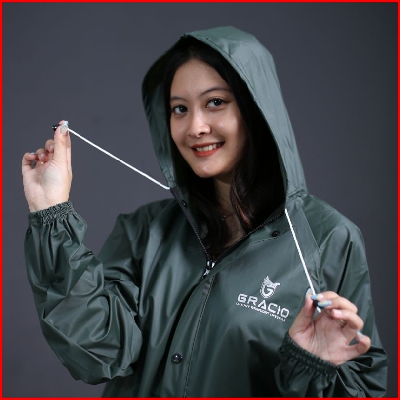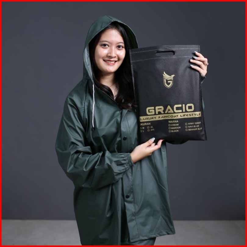 Jas Hujan Gracio Raincoat Mantol Pria Wanita Anti Rembes Terbaik Hijau Army