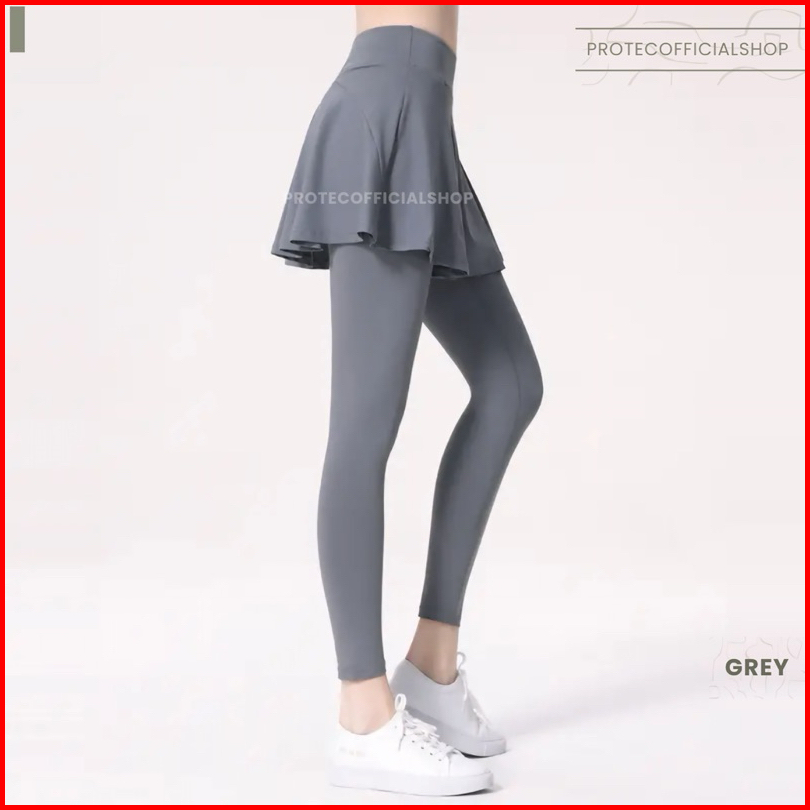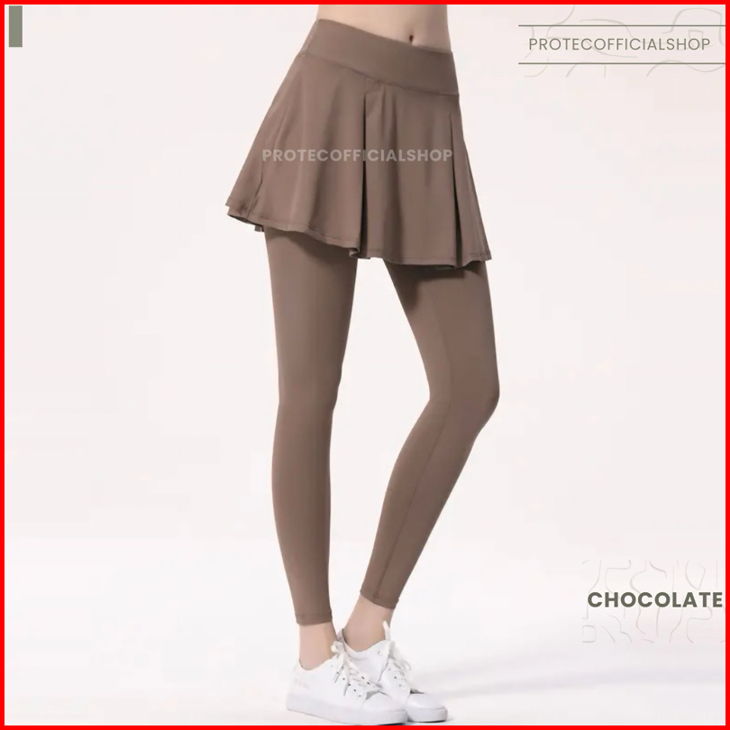 Legging Celana Olahraga Wanita Rok-celana Skirt Hijab Sport High Waist Polos Yoga Dua Lapis Gym Tennis Running Sport Leg