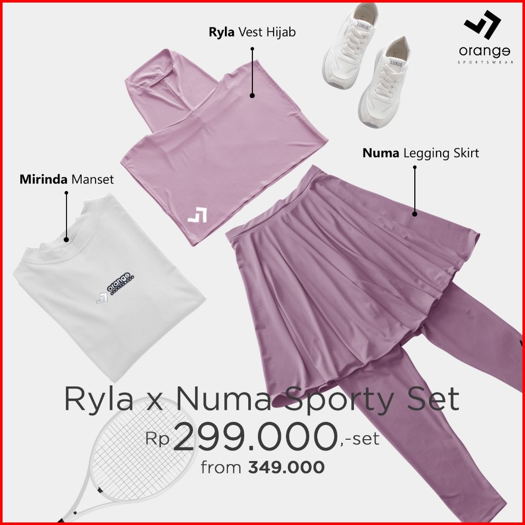 Oneset Rompi Hijab Legging Rok Wanita Jogging Gym Sepeda Ryla X Numa Sporty Set
