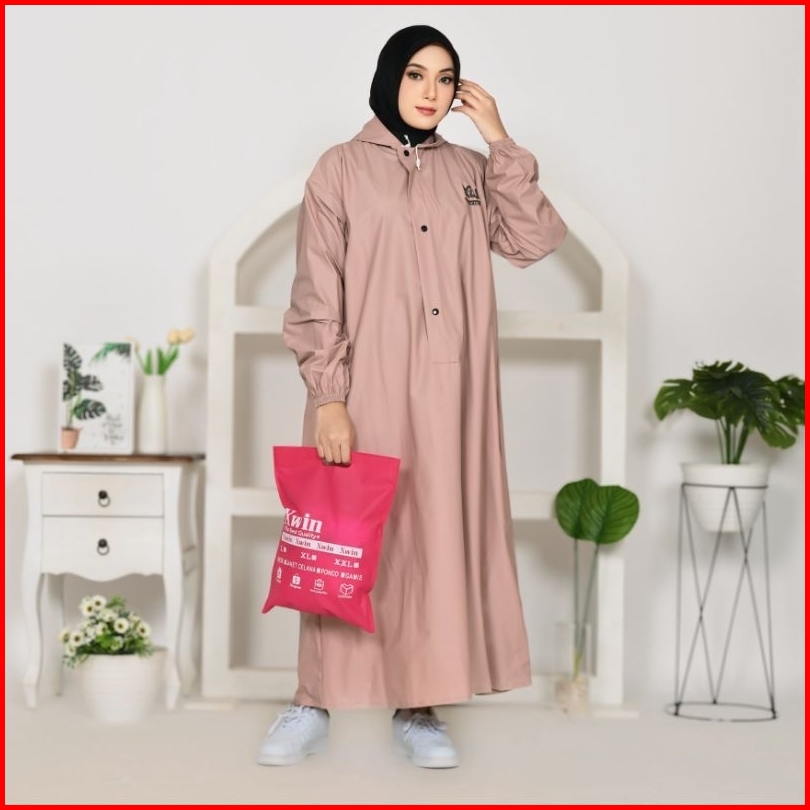 Xwin Raincoat Wanita Jas Hujan Gamis Syar I Berbahan Pvc Tebal Kuat Lentur Anti Rembes Waterproof Tahan Air Dan Kedap Ai