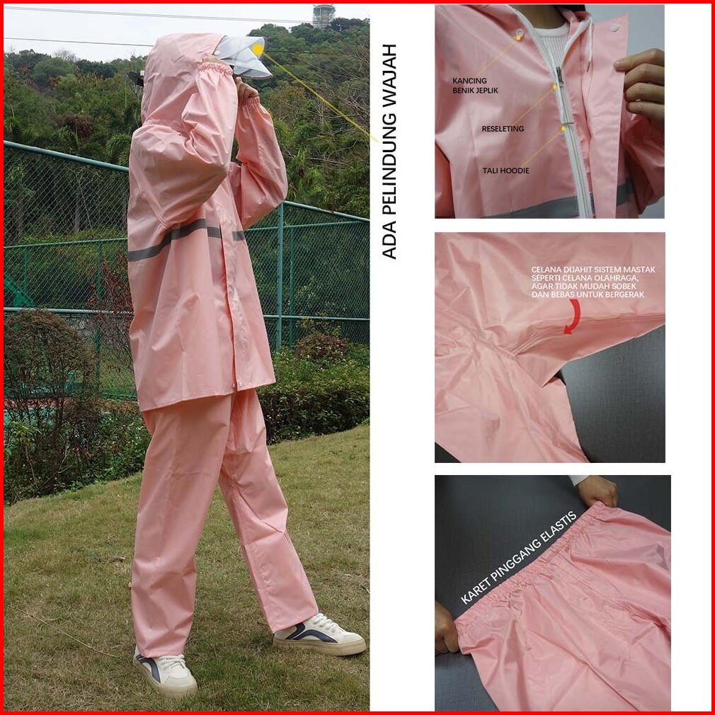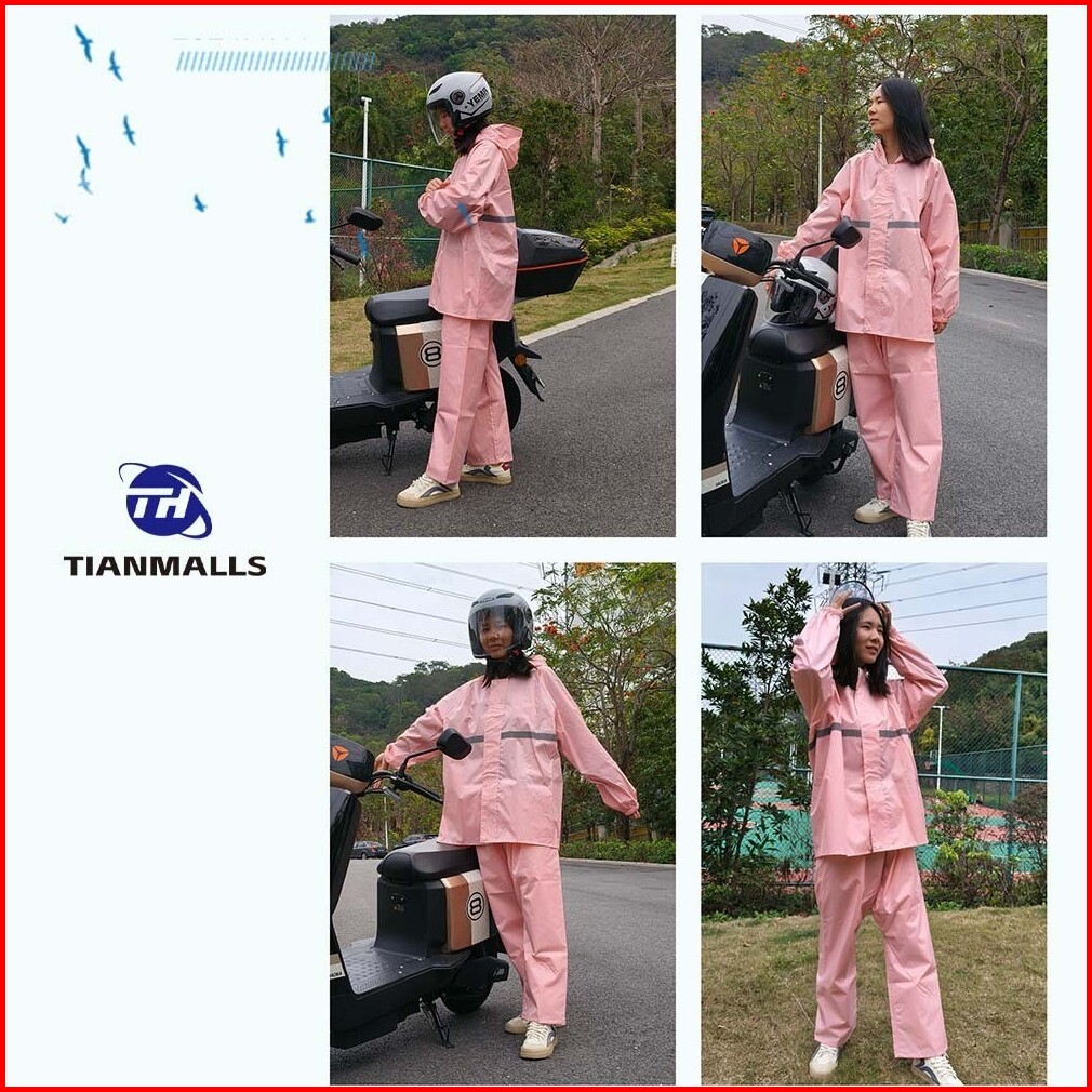 Tianmalls Mantel Hujan Wanita Pink Jas Hujan Celana Anti Angin Rain Wanita Tebal Anti Angin Oxford Cloth Yy