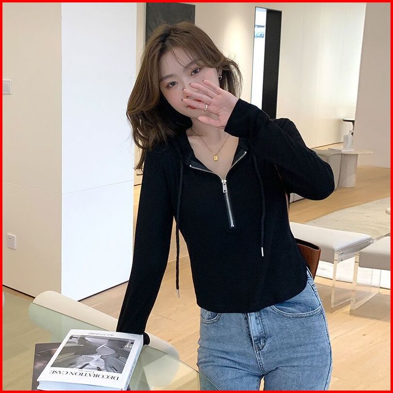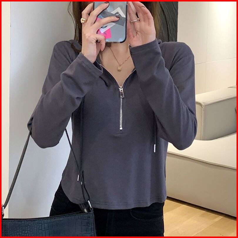 Zip Hoodie Sweatshirt Olahraga Crop Sauna Suit Jogging Lari Bersepeda Despo Gym Fitnes Senam Wanita M L Xl