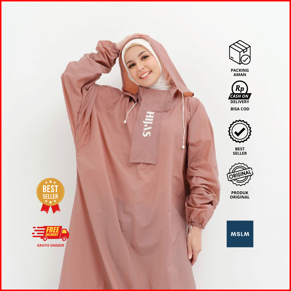 Jas Hujan Wanita Dewasa Ponco Gamis Muslimah Hijaber Jumbo Premium Tebal Jas Hujan Gamis