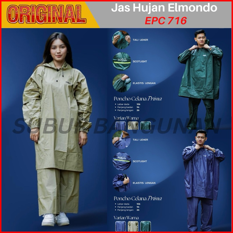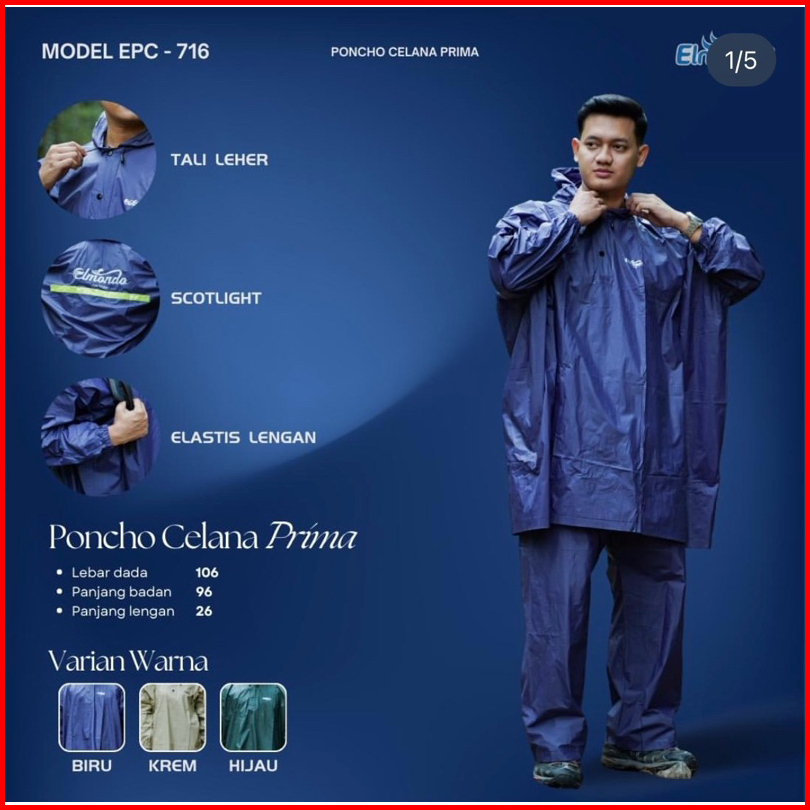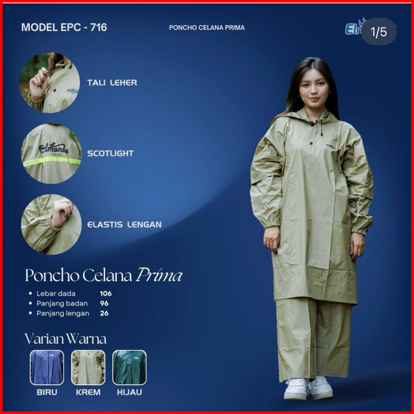 Jas Hujan Ponco Celana Elmondo Prima 716 - Mantel Stelan Poncho Lengan Dewasa Pria Dan Wanita