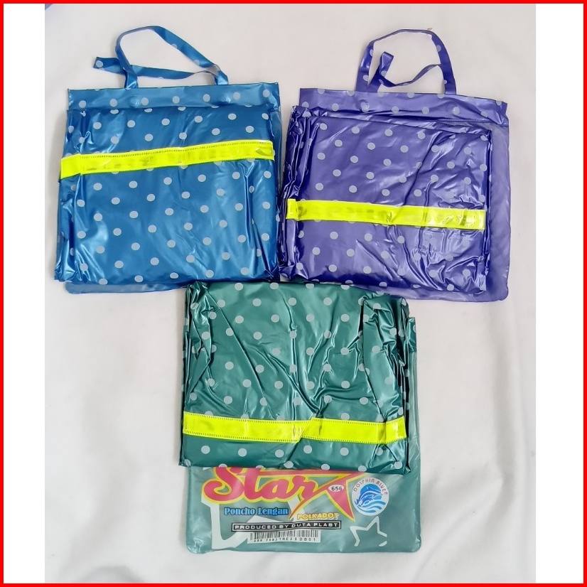 Jas Hujan Poncho Lengan Star Polkadot 656 Jaket Celana Star Polkadot 656