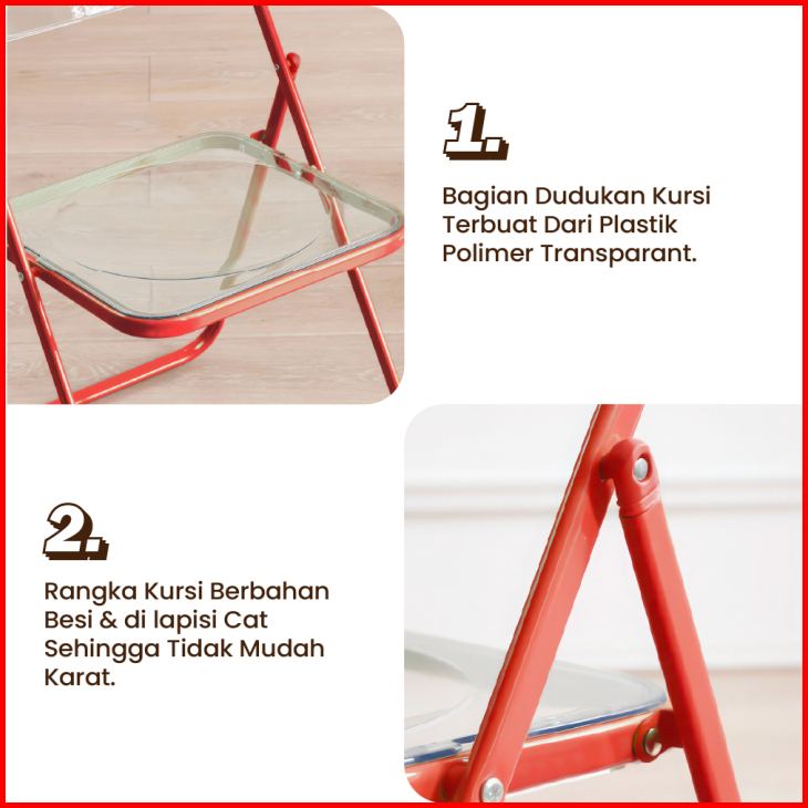 Transparan Kursi Lipat Multifunction Akril Foldable Chair Furniture Tempat Duduk Lipat Minimalis