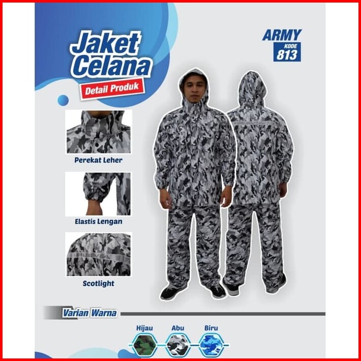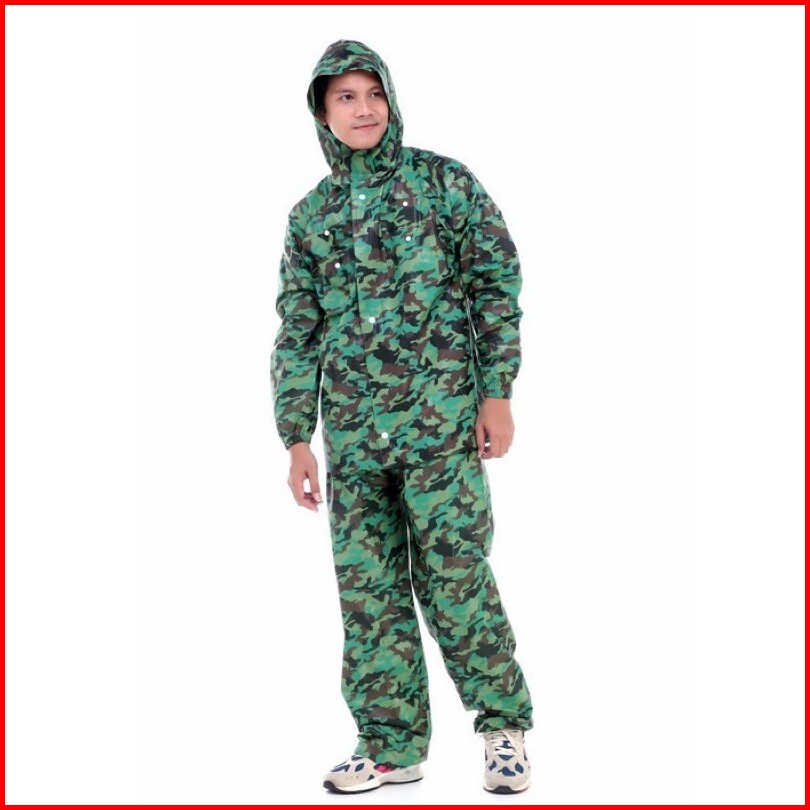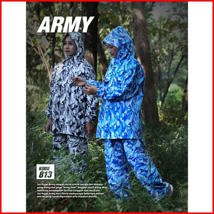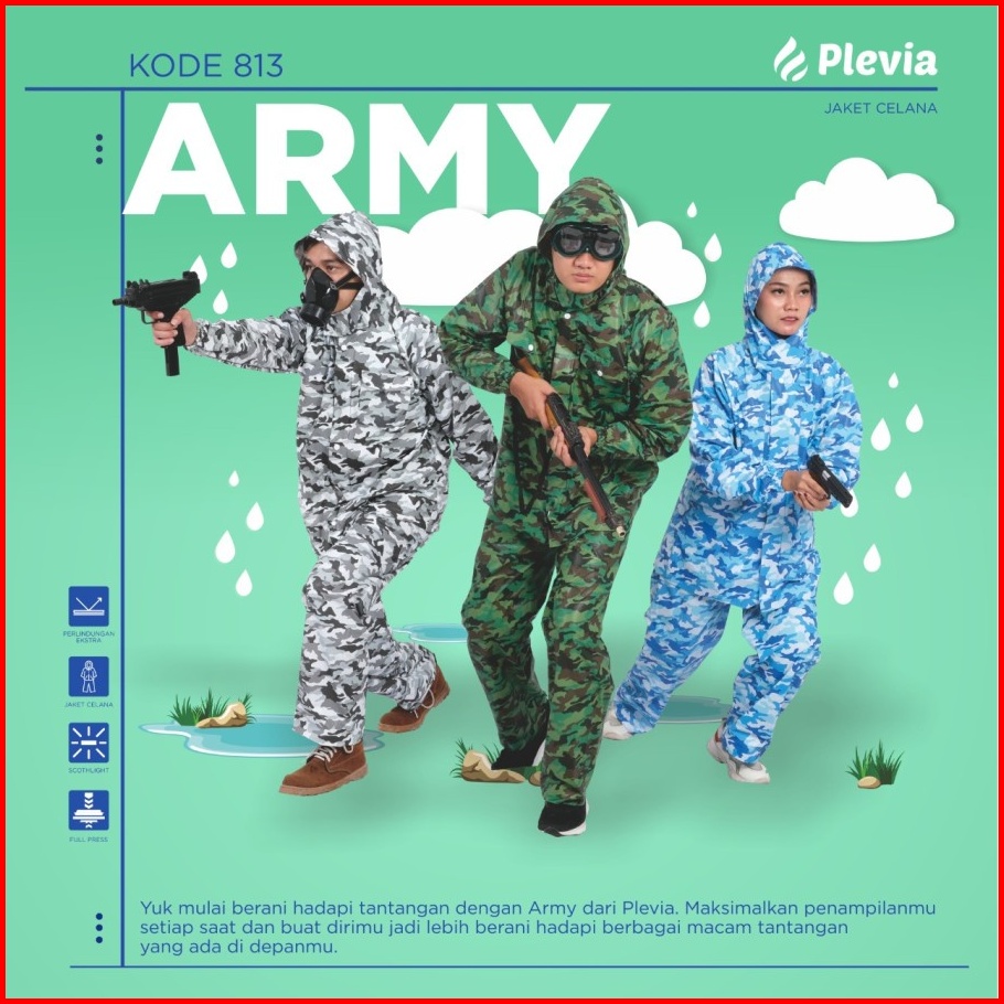 Jas Hujan Plevia 813 Army Setelan Jaket Celana Mantel Mantol Ujan Raincoat Stelan Loreng Armi