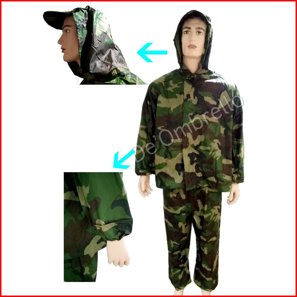 888 Jas Hujan Stelan Jaket Celana Loreng Army Anti Air