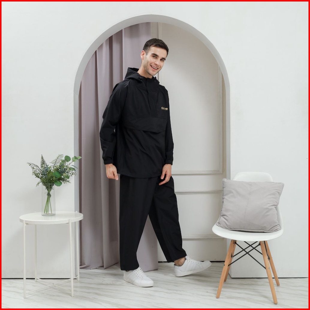 Jas Hujan Saku Kangguru Sixten Mantel Pria Wanita Bahan Taslan Tebel