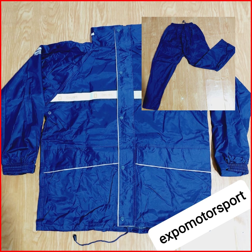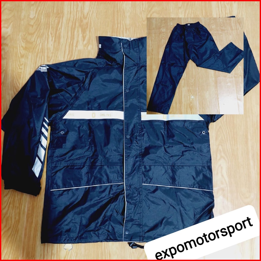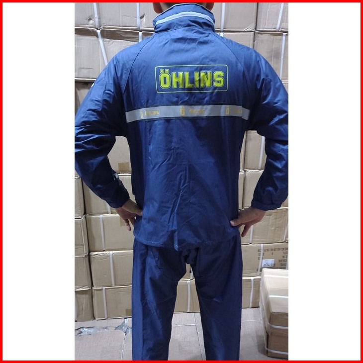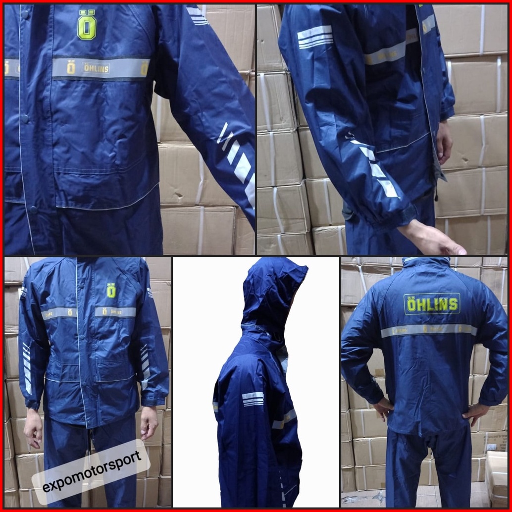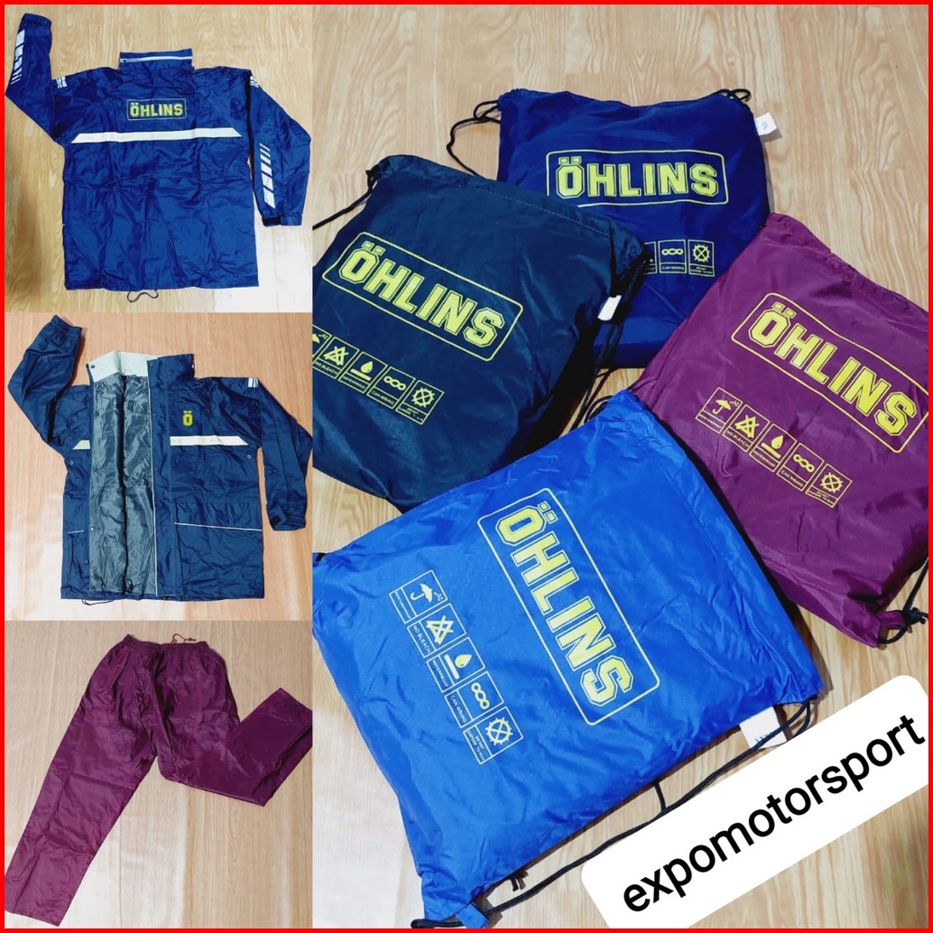 Garansi Produk Ori Jas Hujan Mantel Hujan Raincoat Ohlins Bahan Taslan Double Furing Stelan Atas Bawah Tidak Tembus Air