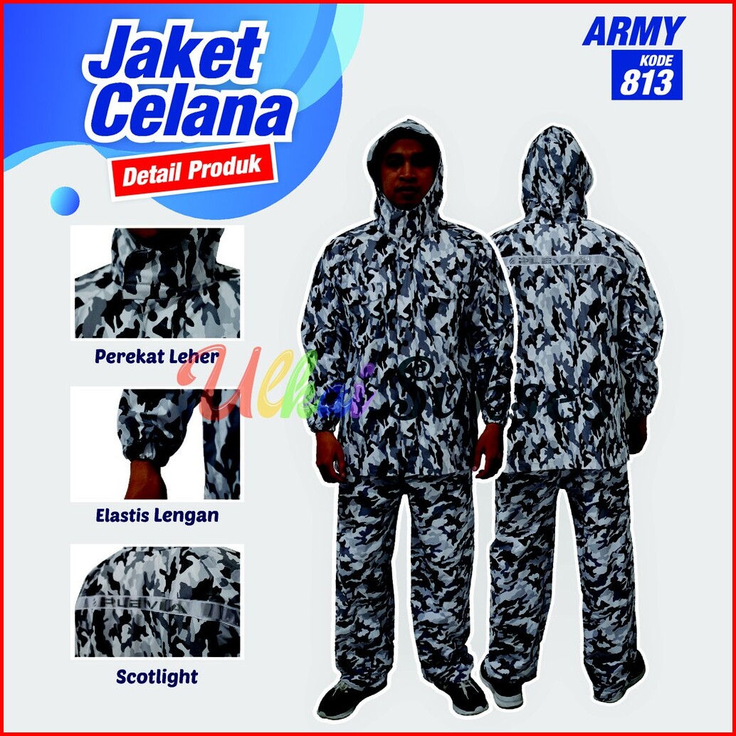 Plevia Jas Hujan Setelan Plevia Army 813 - Raincoat Dewasa Jaket Celana Pria Wanita Murah Laris